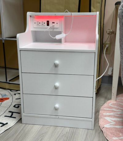 CHILDRENS SIZE NIGHTSTAND WITH 3 DRAWERS, POWER AND LED LIGHTS