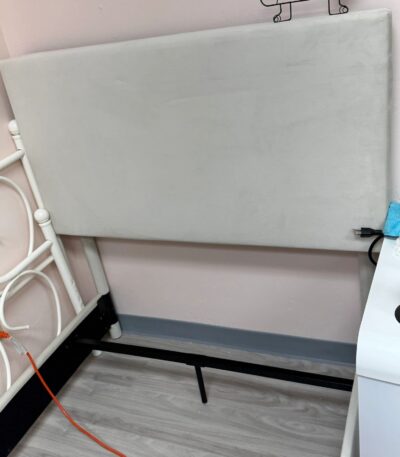 The Z by Novogratz Taylor Upholstered Bed Twin combines modern design with comfort. Featuring an ivory headboard and white metal