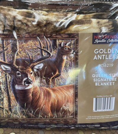 NU TRENDZ GOLDEN ANTLERS DEER SIGNATURE SERIES QUEEN BLANKET