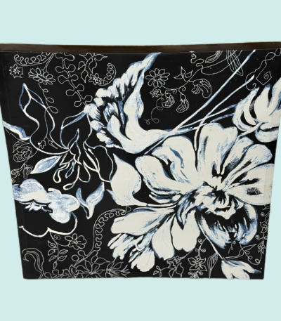 Elevate your home decor with our striking 24″ Squared Black and White Wall Art. Featuring a bold white flower design