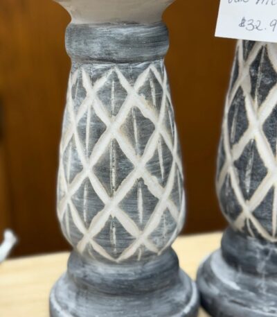Elevate your home decor with this elegant 2-piece set of used ceramic candle holders featuring a stunning diamond pattern in