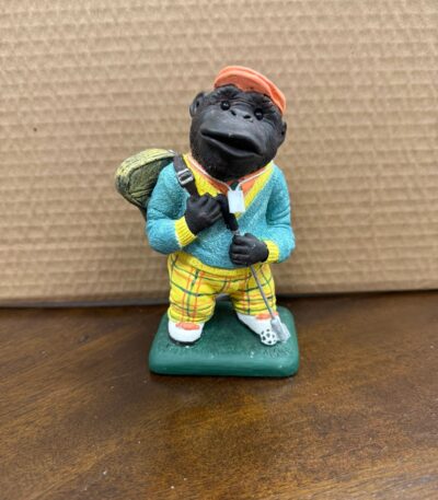 5 3/8″ HAND PAINTED GOLFING GORILLA CERAMIC FIGURINE