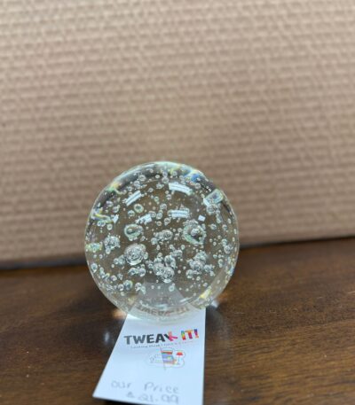 4″ CRYSTAL GLOBE PAPER WEIGHT CLEAR W/BUBBLES INSIDE