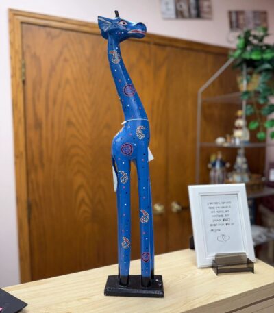 25″ H HAND-PAINTED GIRAFFE FROM AFRICA – BLUE