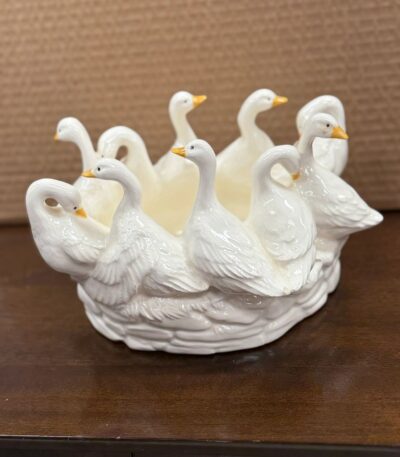 VINTAGE CERAMIC CIRCLE OF GEESE PLANTER – OVAL SHAPE – 9.5 X 9.5