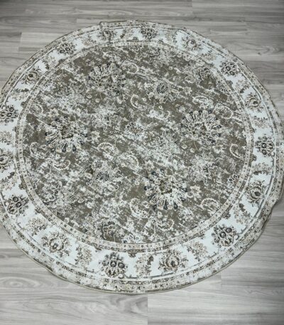 jinchan Round Rug 6ft Area Rug – Taupe Vintage Floor Mat Kitchen Indoor Thin Rug Floral Print – Washable Circle