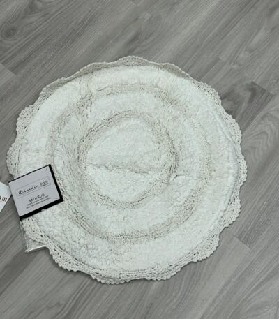 Chardin home White Crochet Bathrug,100% Cotton Round bathmat with artisanally Handcrafted Crochet Border, 24 Inch Diameter, Perfect for Half Baths,