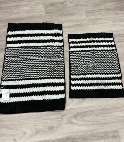 Tindbea Bathroom Rugs Set 2 Piece, Extra Soft and Absorbent Fluffy Striped Chenille Bath Mat Rug Set, Non Slip Bathroom