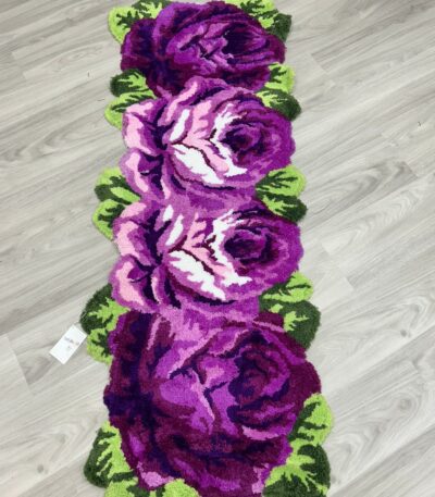 UKELER Runner Room Rug 65×23.6 inch Purple Rose Flower Kitchen Runner Non-Slip, Shaggy Soft Flower Rugs for Girls Bedroom