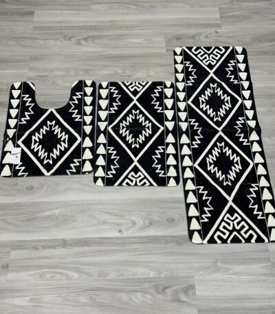 Uphome Boho 3 Piece Bathroom Rug Set Black Soft Non-Slip Bathroom Runner with U-Shaped Contour Toilet Mat Machine Washable Western