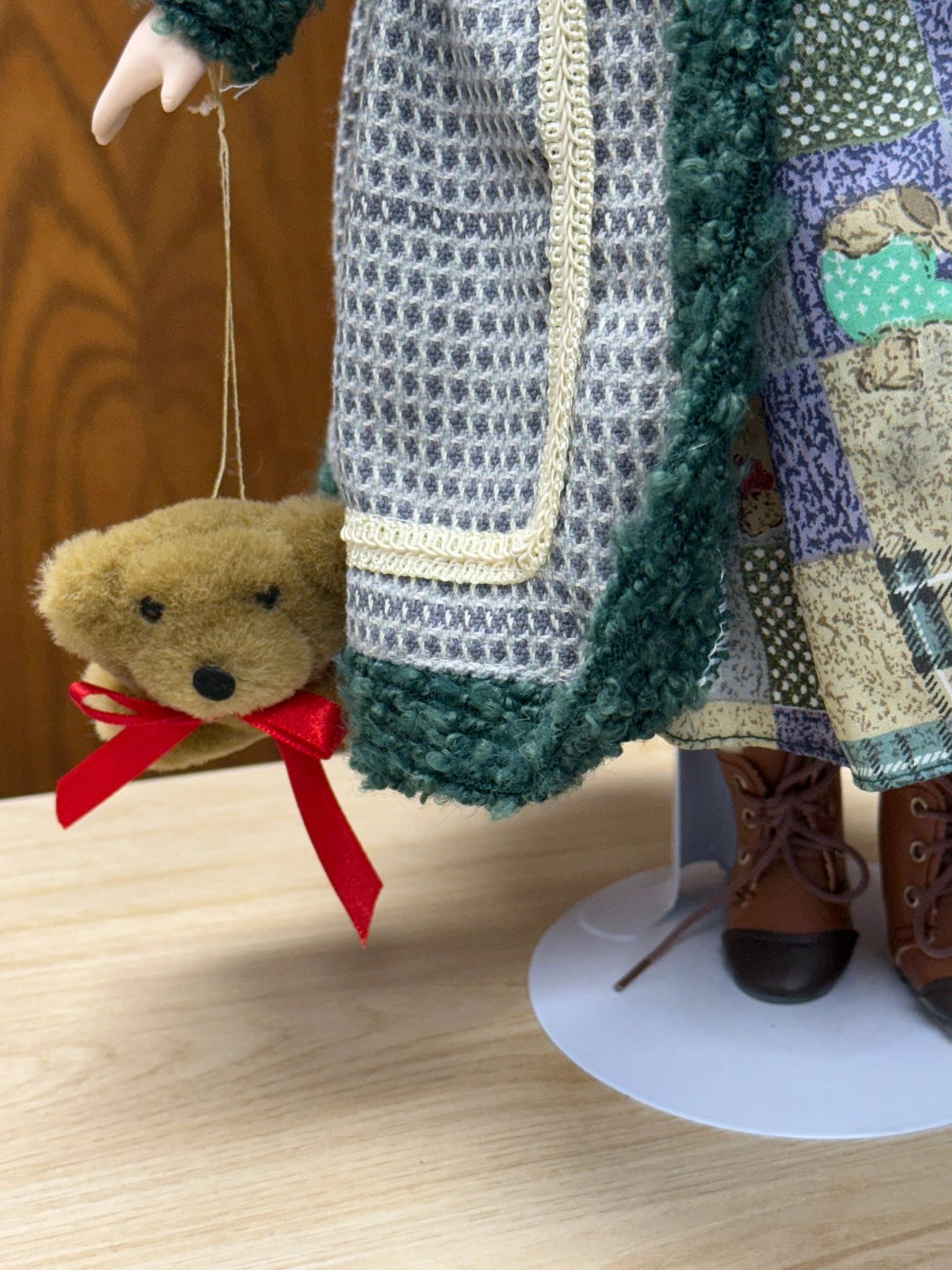 Elevate your collection with this exquisite 17″H collectors porcelain doll. Dressed in a winter coat and hood, holding a teddy bear, this piece adds charm to any display.
