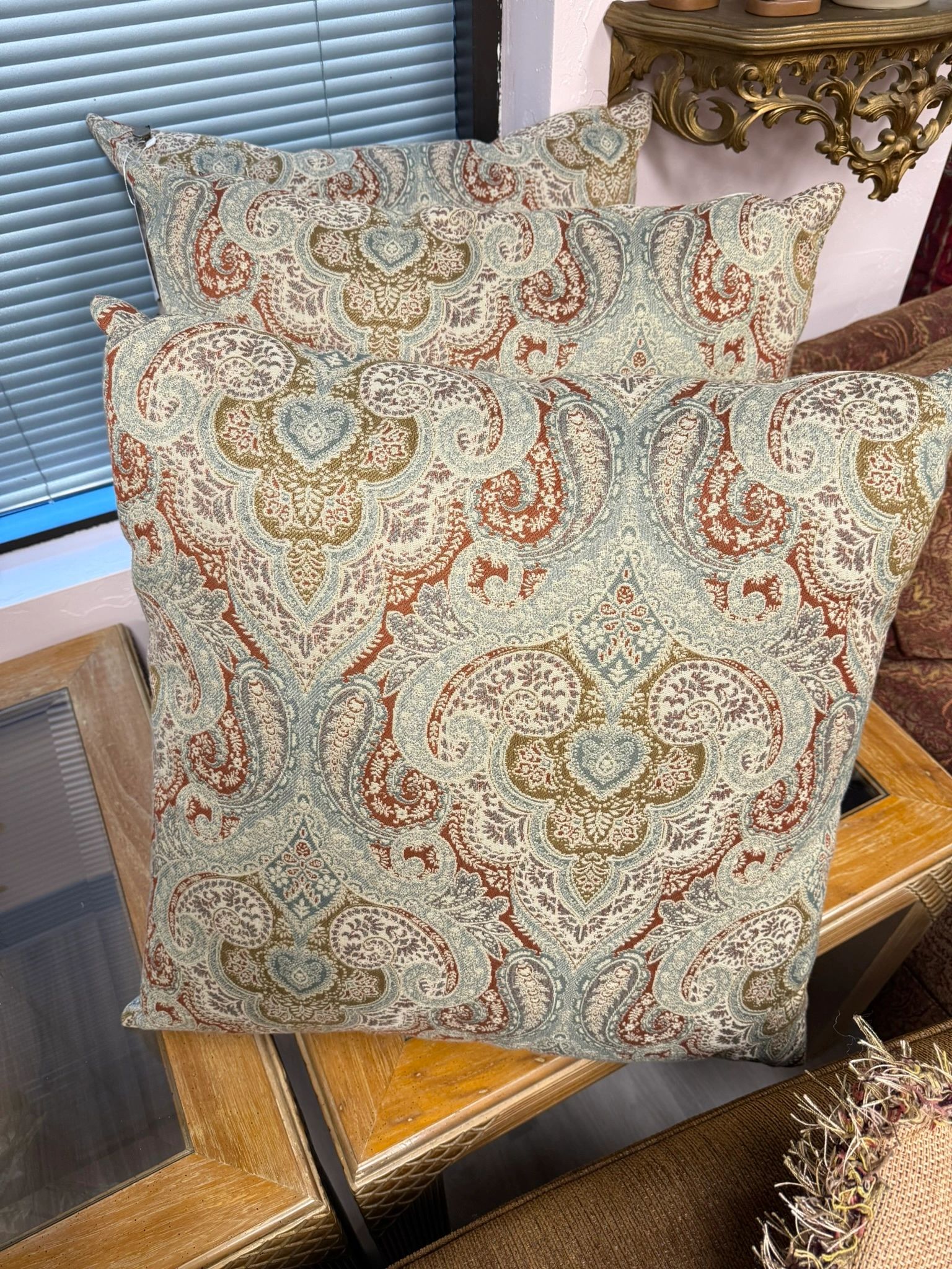 22″ SQUARE THROW PILLOWS – SET OF 3 – PAISLEY PRINT VINTAGE -PIER I BRAND