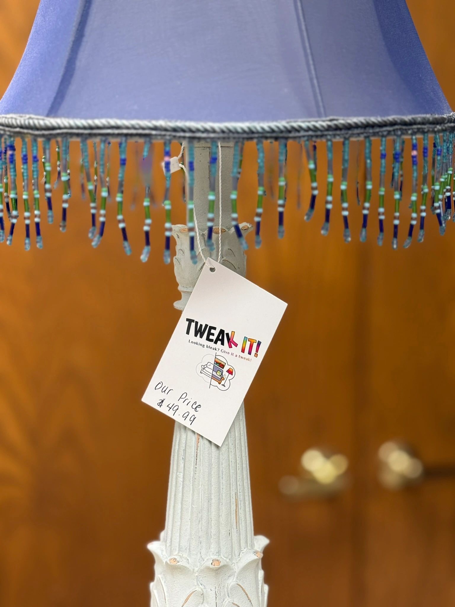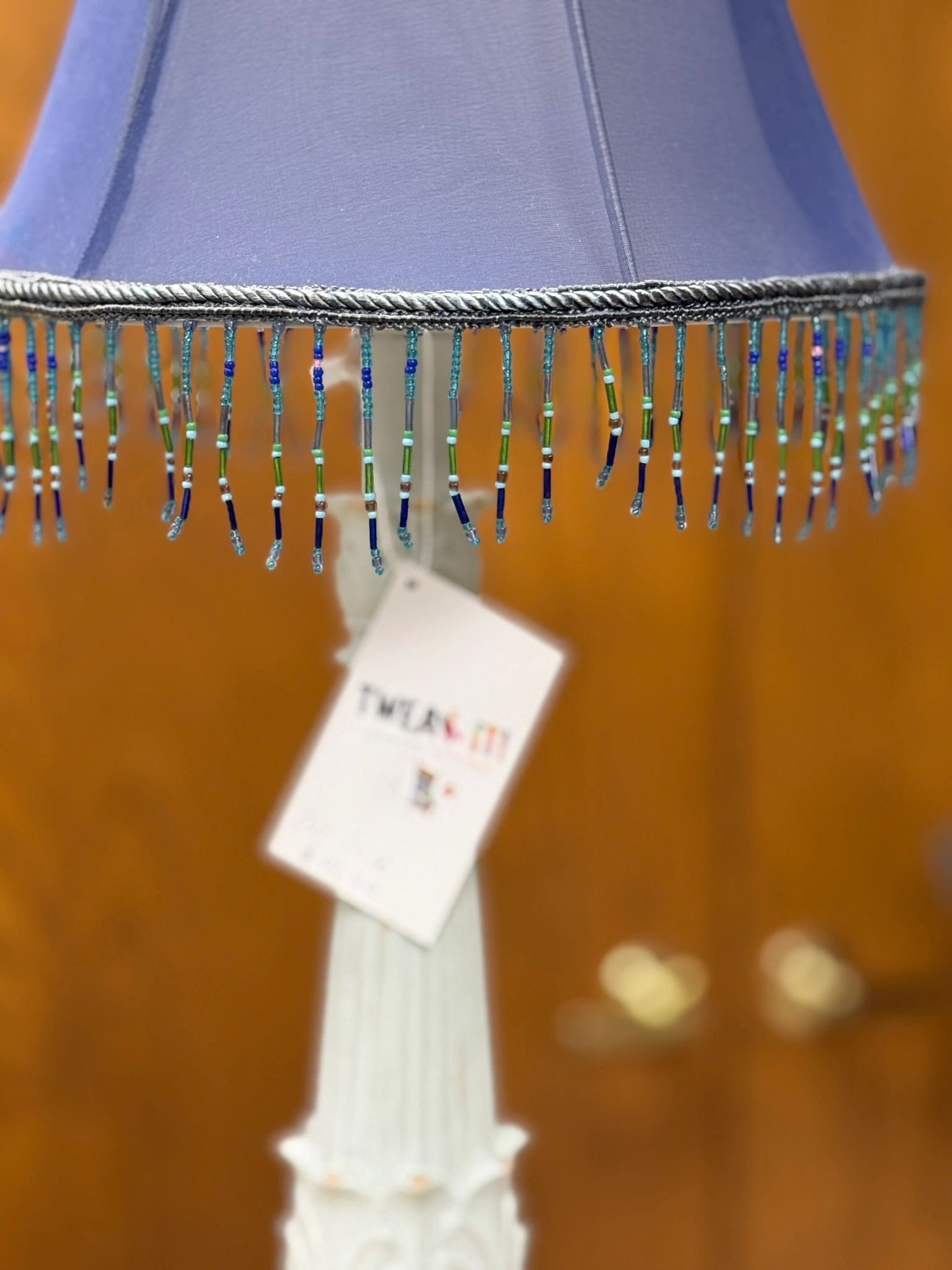 Elevate your home decor with our 25.5″H Beautiful Custom Victorian Distressed Grey Table Lamp with Purple Beaded Shade. This vintage-style lamp adds a touch of elegance to any room.