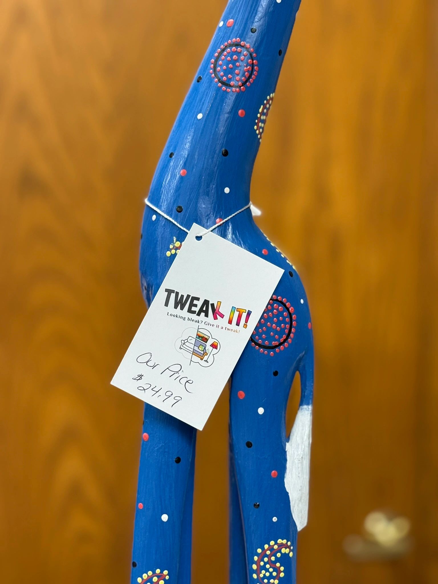 25″ H HAND-PAINTED GIRAFFE FROM AFRICA – BLUE