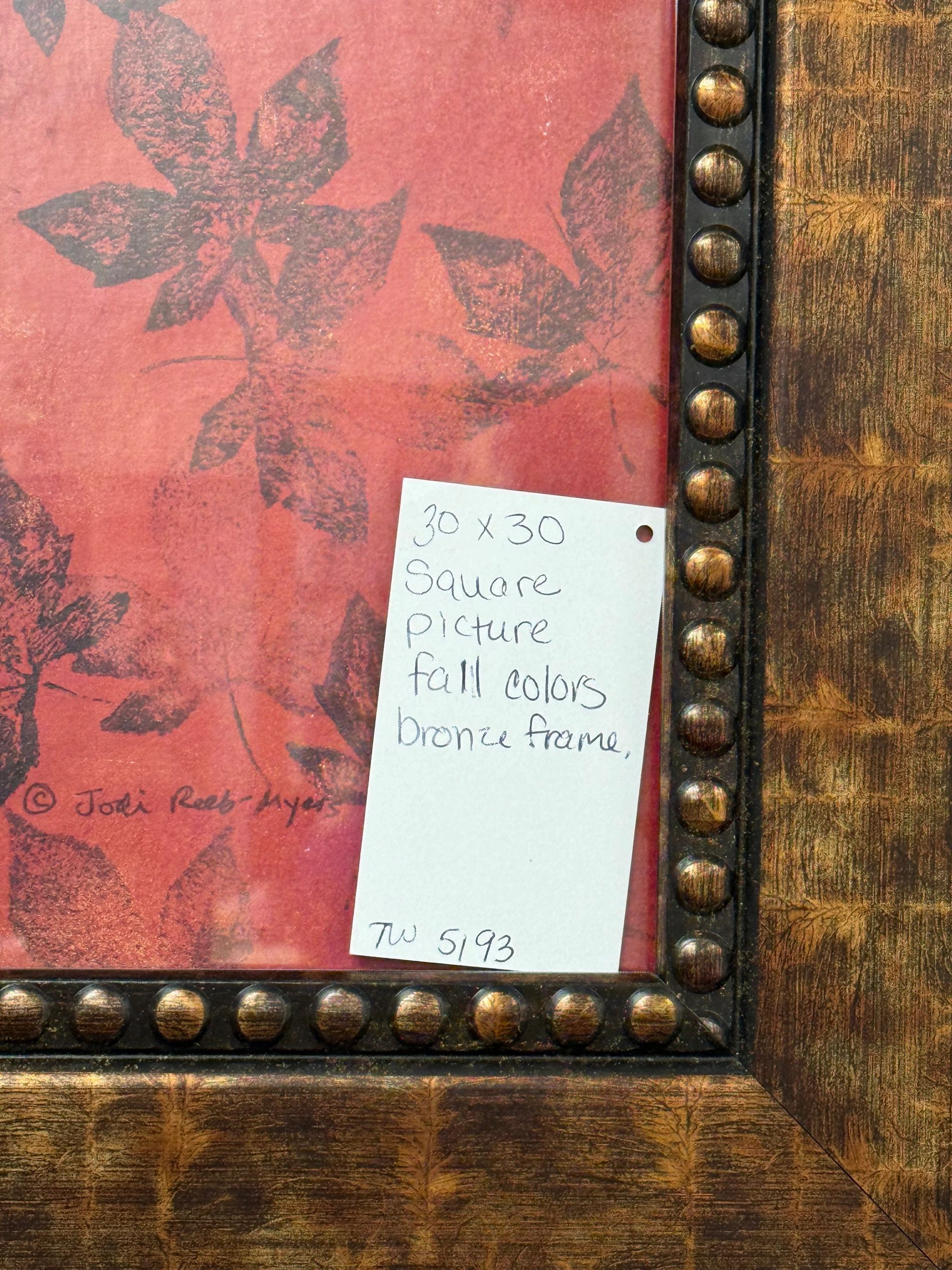 30″ SQUARED PICTURE – LEAVES – FALL COLORS – BRONZE FRAME