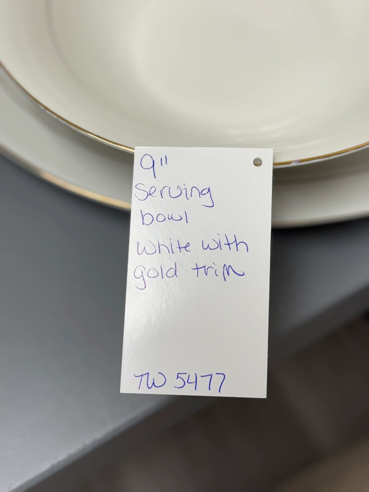 9″ SERVING BOWL WHITE WITH GOLD TRIM