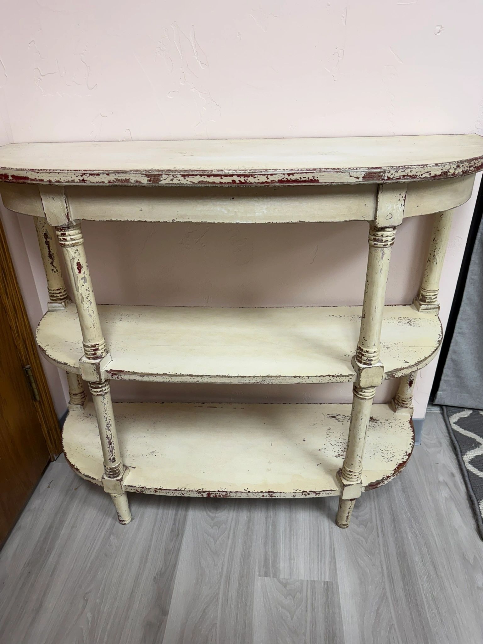 ANTIQUE STYLE WHITE/BURGUNDY ENTRY WAY TABLE