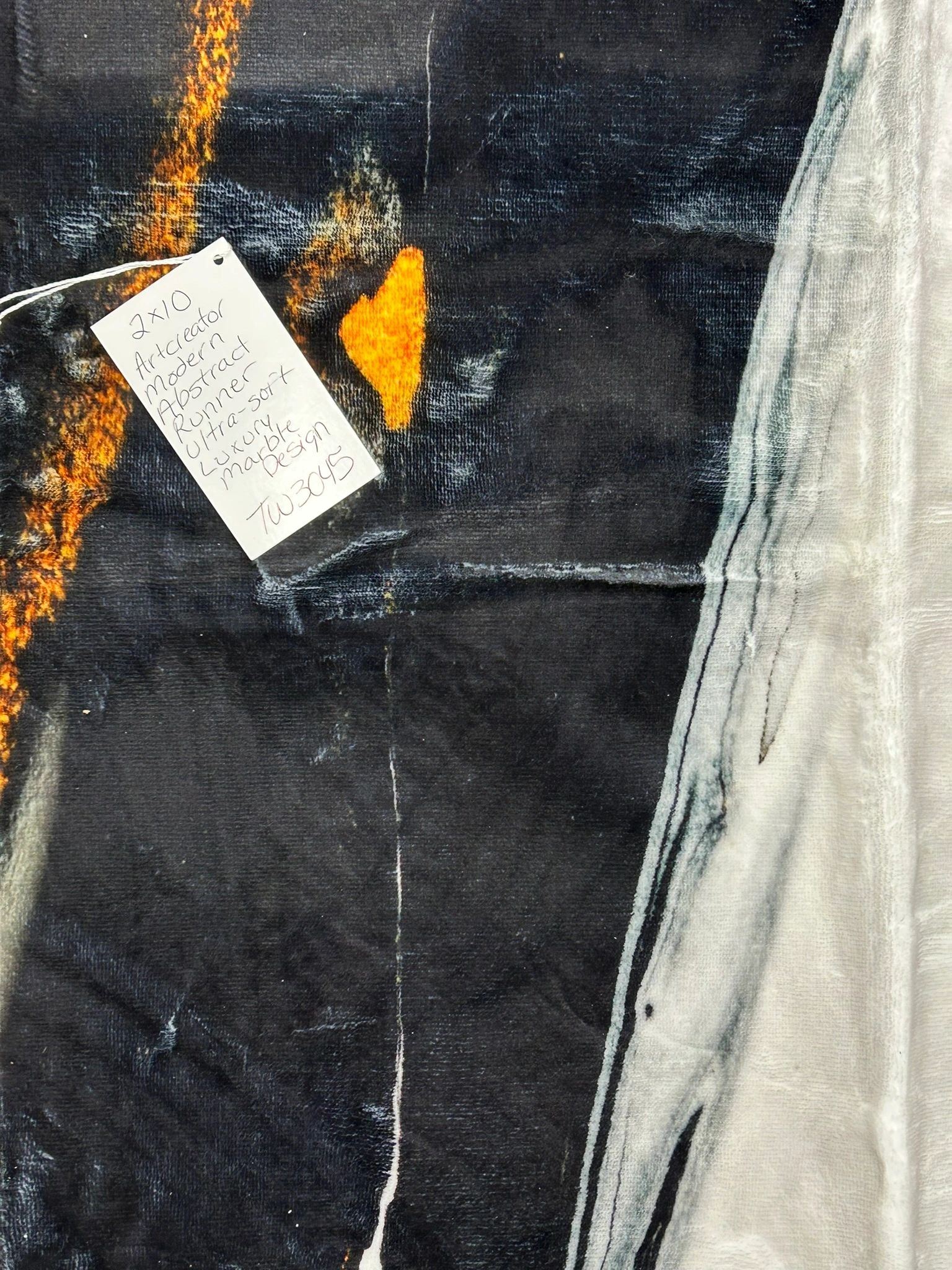 ARTCREATOR Modern Abstract Hallway Runner Rug – 2′ x 10′ Washable Hallway Runner Rug, Black Long Ultra Soft Kitchen Runner Rug, Non-Slip Low-Pile, Luxury Marble Texture Design