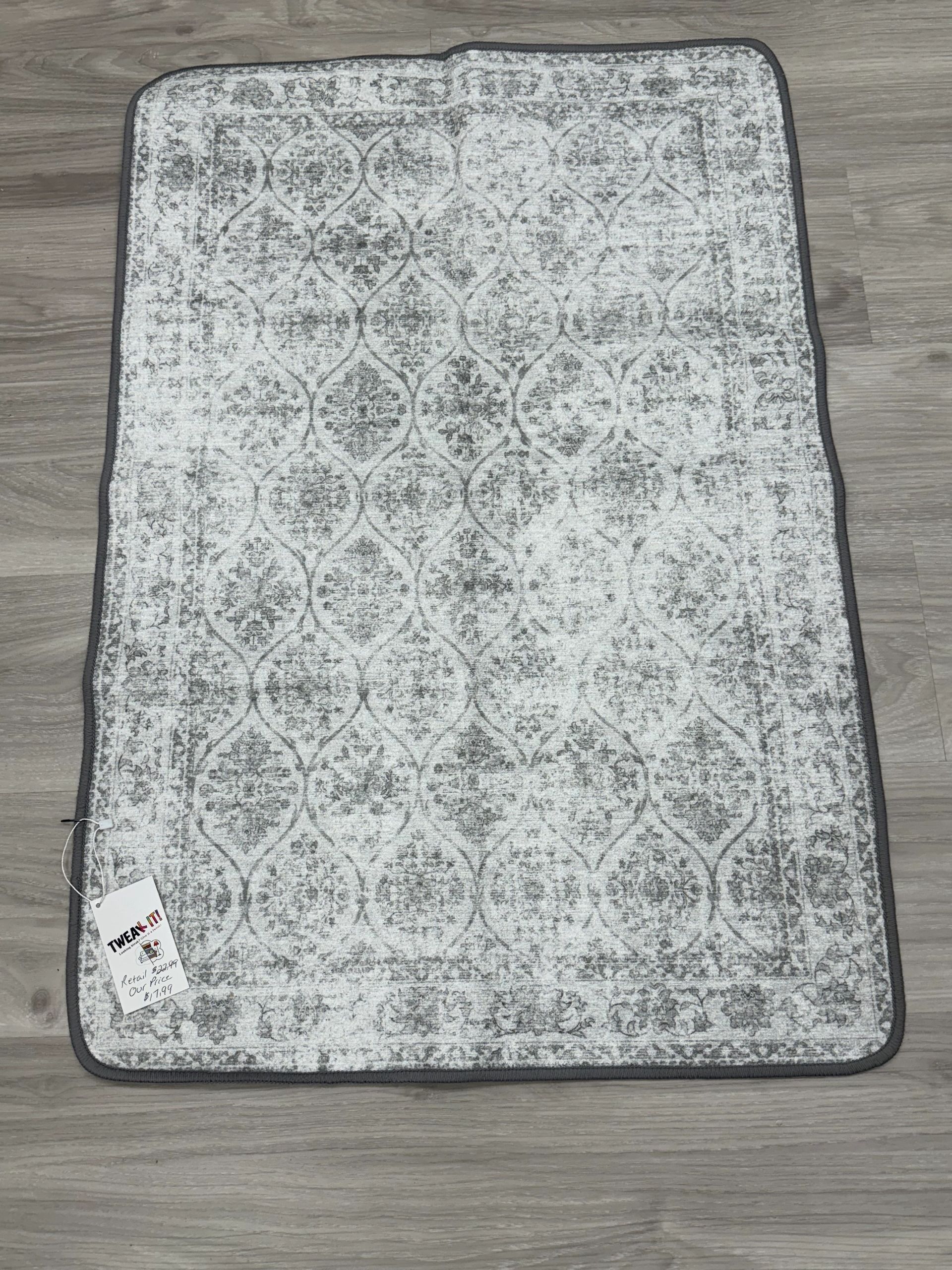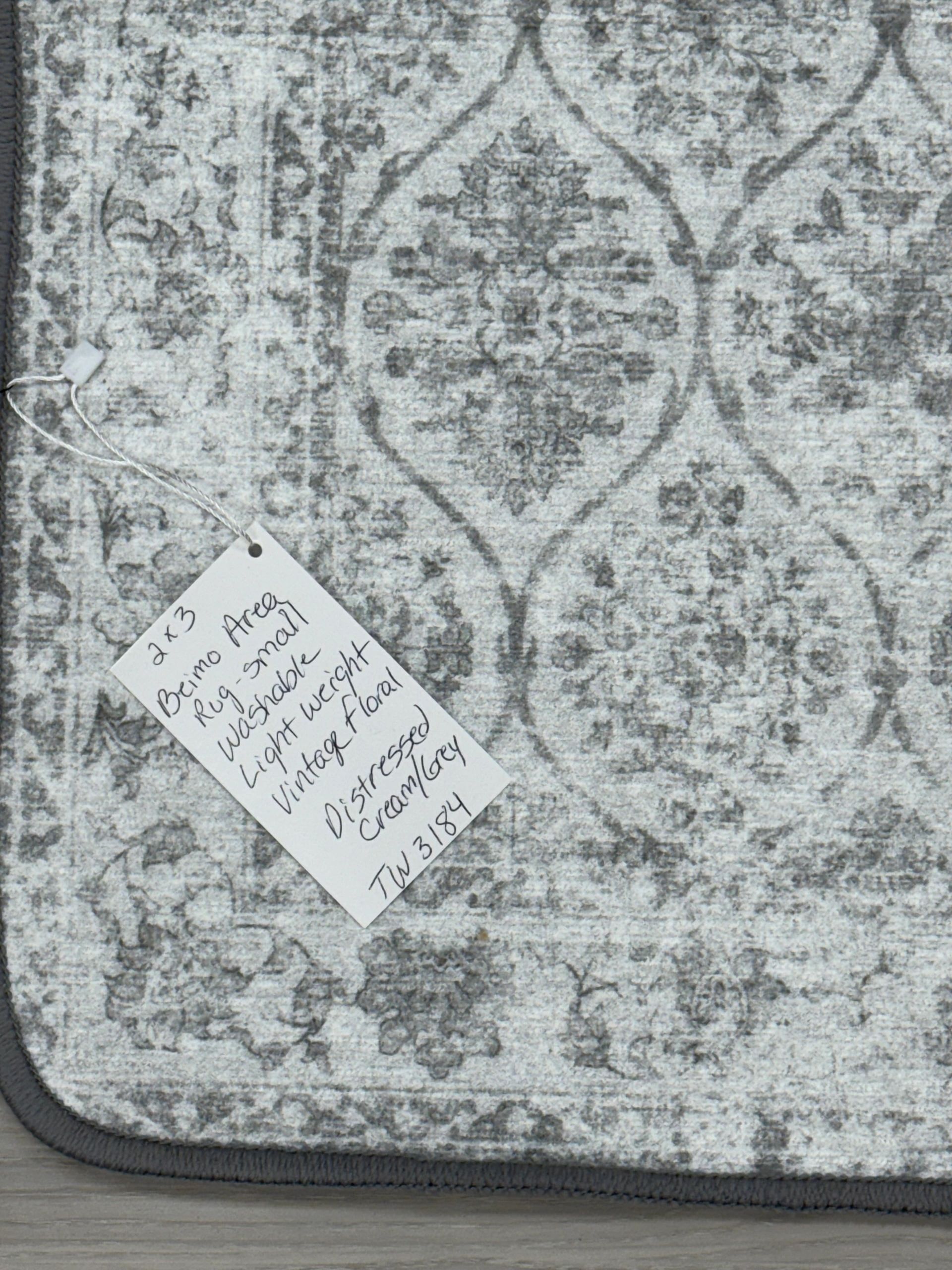 BEIMO 2X3 Area Rugs for Entryway,Machine Washable Small Indoor Entrance Mat, Stain Resistant Non-Shed Vintage Floral Print Door Throw Thin Rug, Lightweight with Non Slip Backing, Distressed Cream/Gray