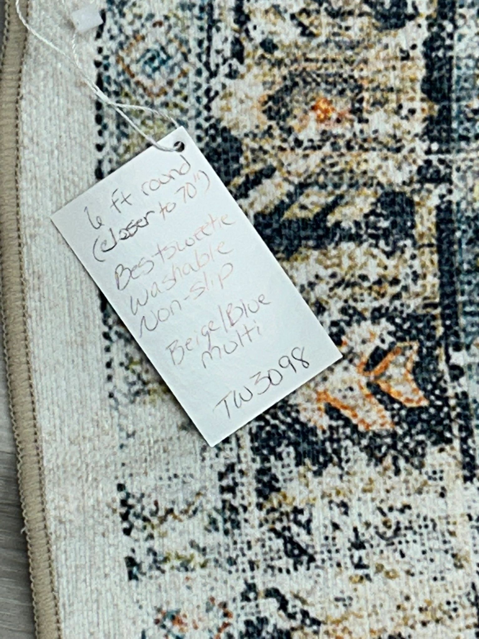 BESTSWEETIE 6ft Round Rugs Washable Round Rug Non-Slip No Pile Round Rugs 6ft Boho Round Rugs for Living Room 6ft Vintage Round Rug Carpet for Bedroom Kitchen, Beige
