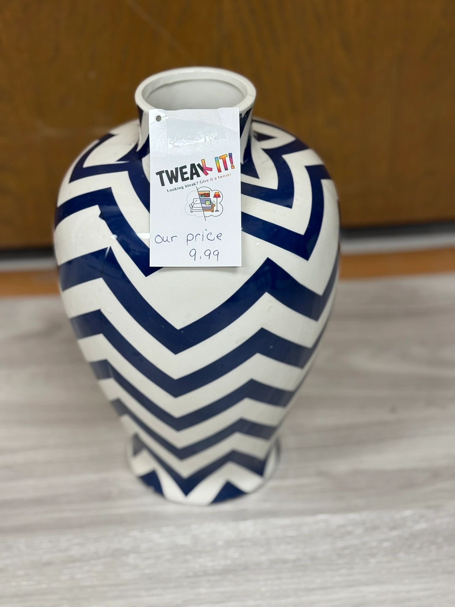 Add a touch of elegance to your home decor with our Blue and White Striped Flower Table Vase. Perfect for displaying fresh blooms or greenery.