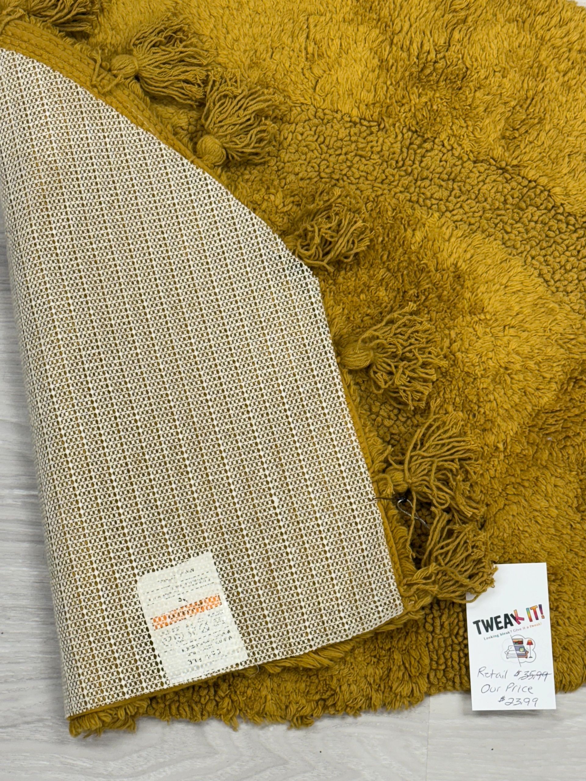 Boho Bathroom Rugs with Tassels Hand Woven Cotton Mat Half Circle Bath Mat Non-Slip Bath Mat for Bathroom Washable Boho Bath Mat Carpet for Bathroom, Shower, Tub 20″x32″ Mustard