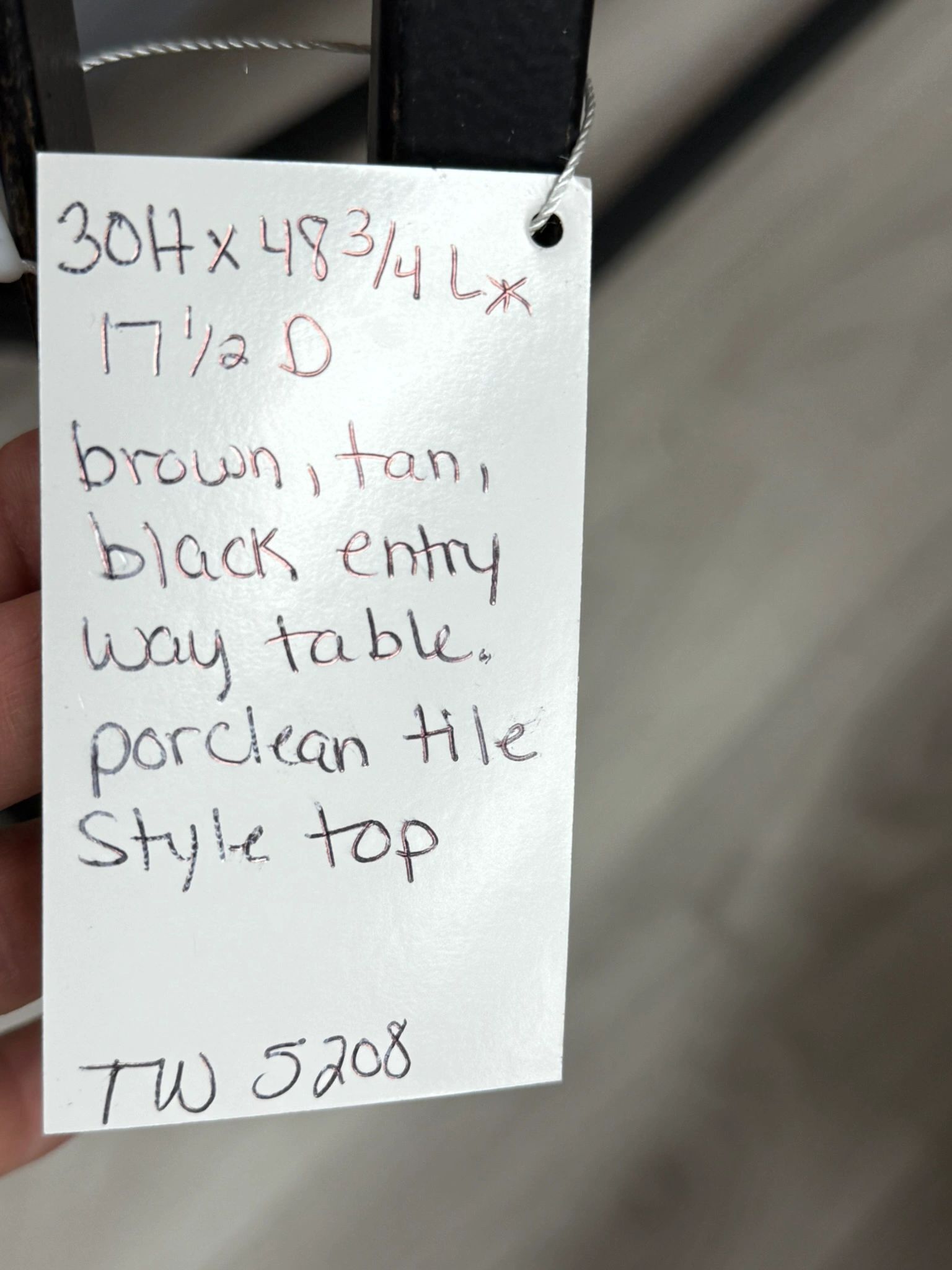 Enhance your entryway with our Brown/Tan/Black Large Entry Way Table featuring a porcelain tile style top. Elegant and stylish, perfect for welcoming guests into your home.