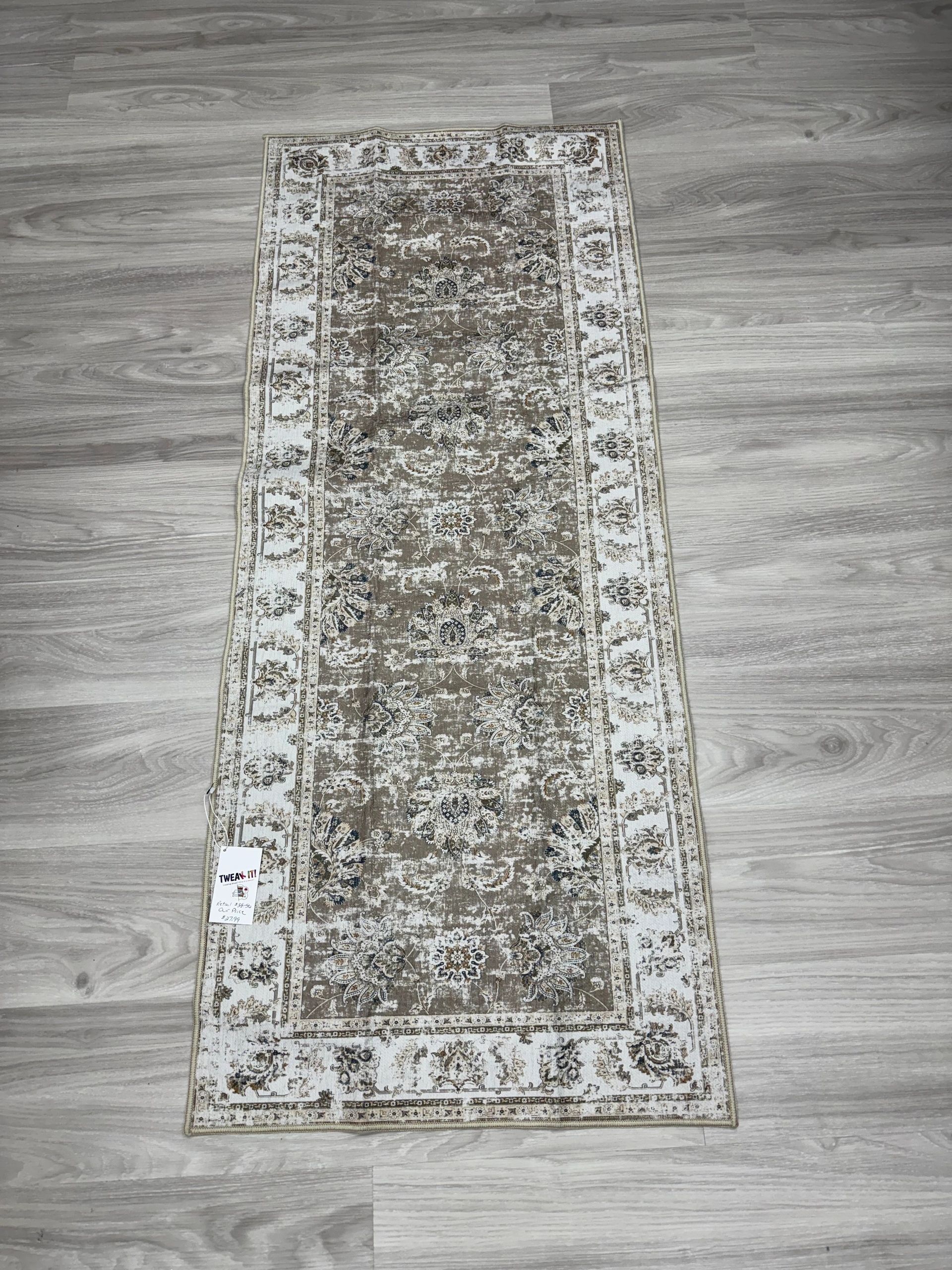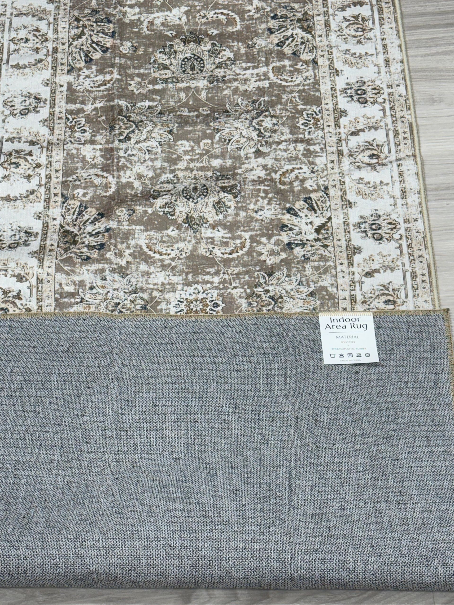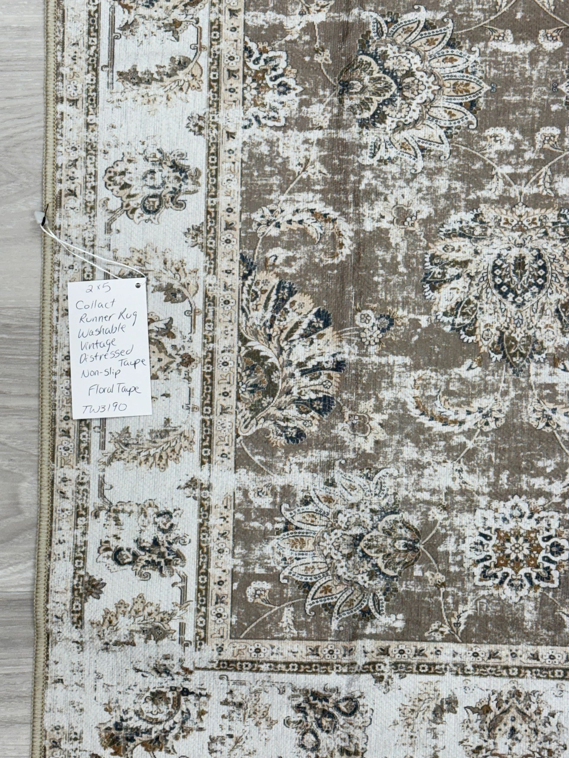 COLLACT Runner Rug 2×5 – Hallway Runner Rug Washable Rug Floral Print Kitchen Rug Vintage Distressed Taupe Rug Non Slip Thin Rug Retro Farmhouse Rug for Bedroom Bathroom Laundry Room Doorway