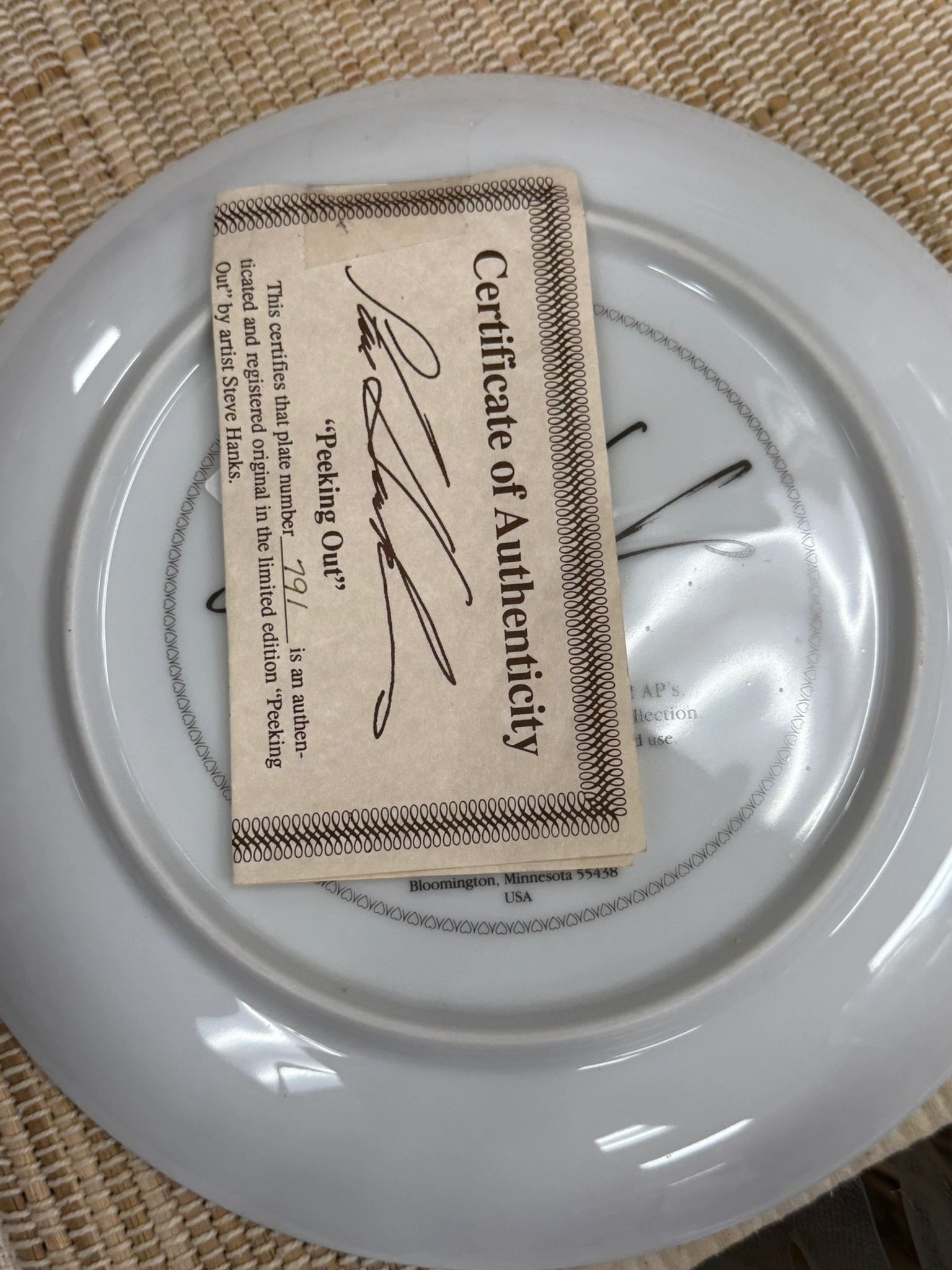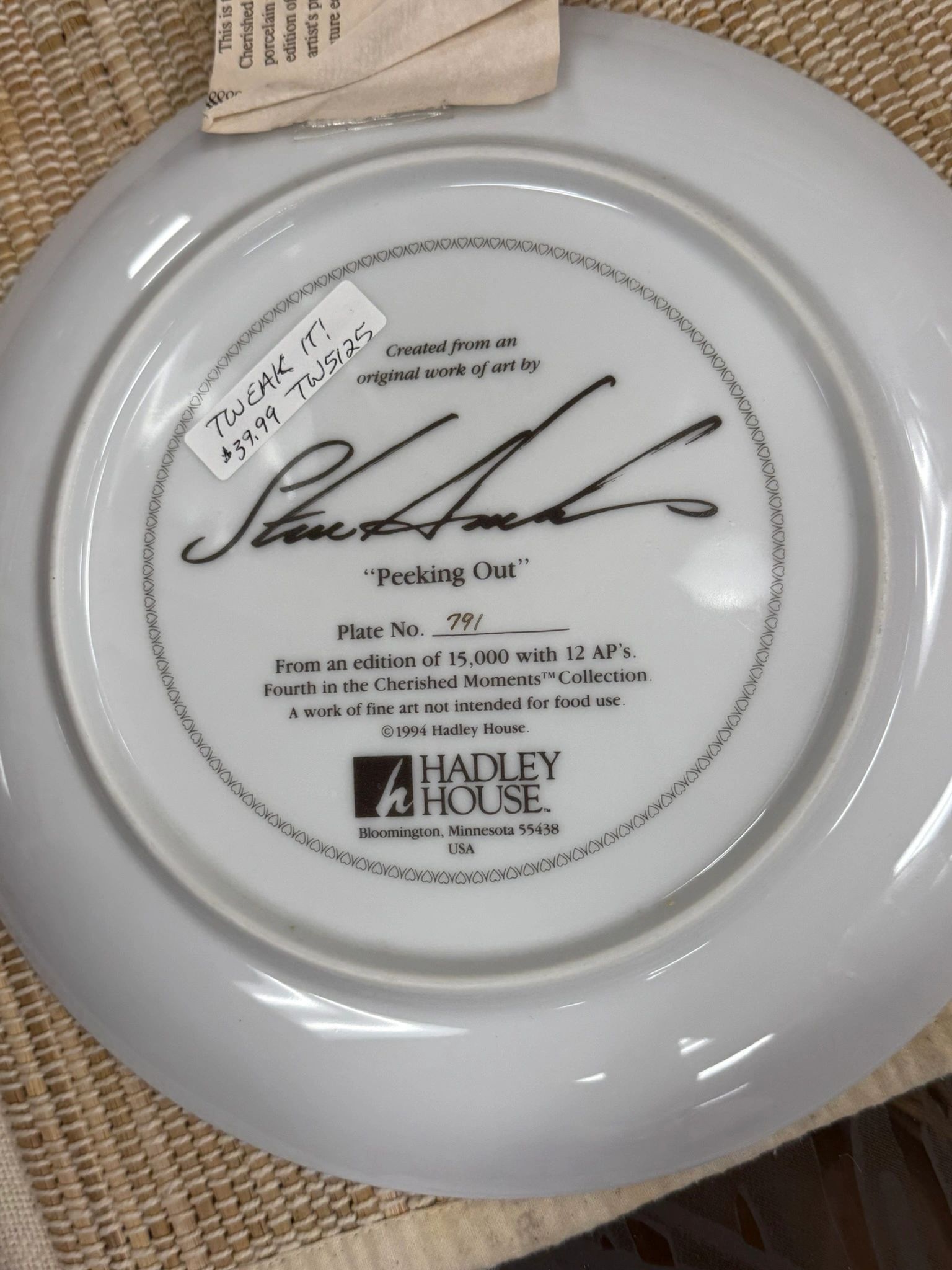 HADLEY HOUSE – STEVE HANKS – CHERISHED MOMENTS COLLECTION – FOURTH – PEEKING OUT – PLATE 791