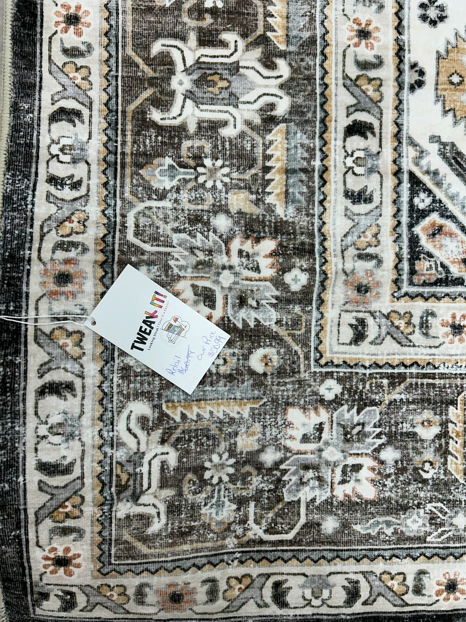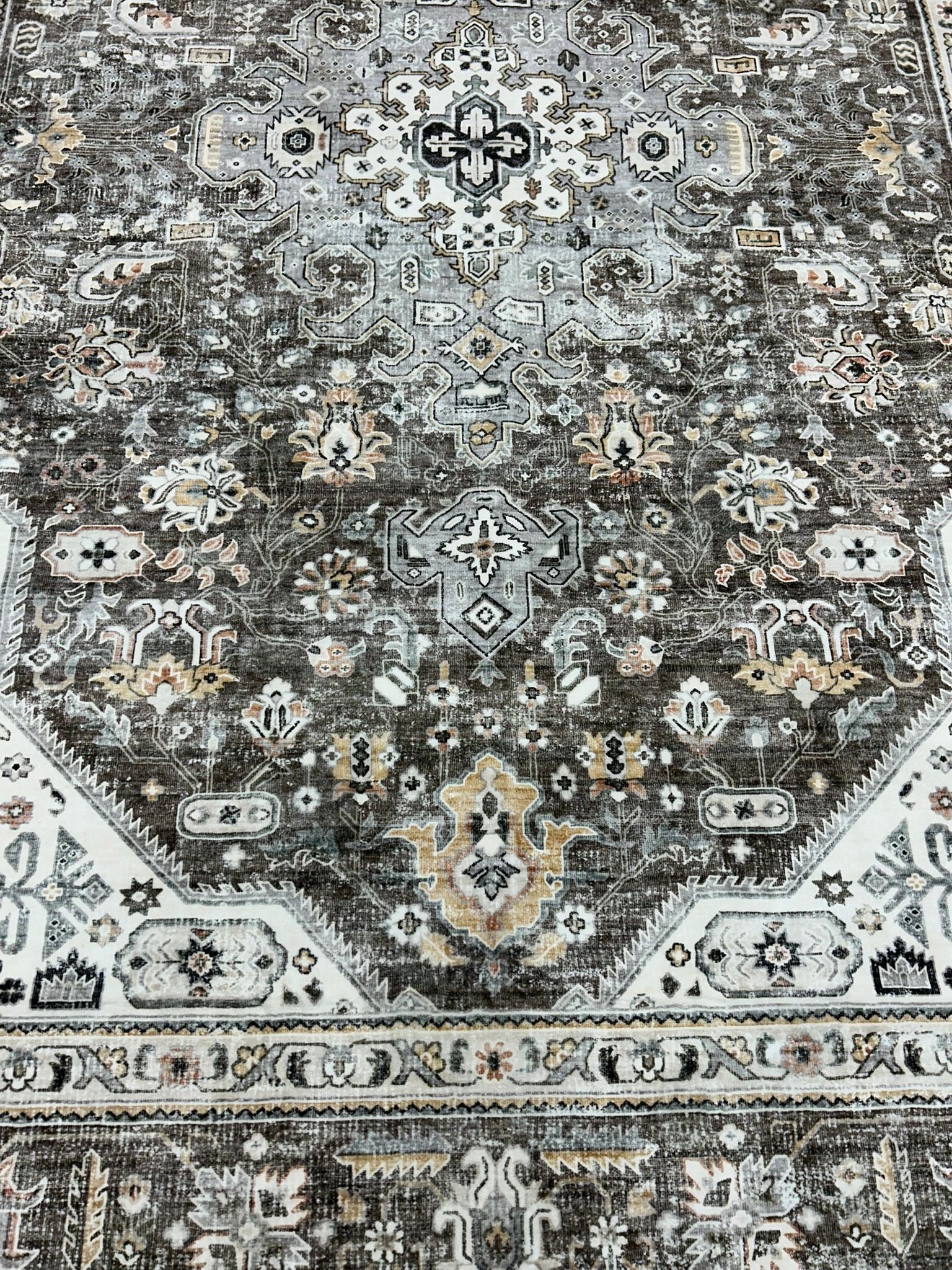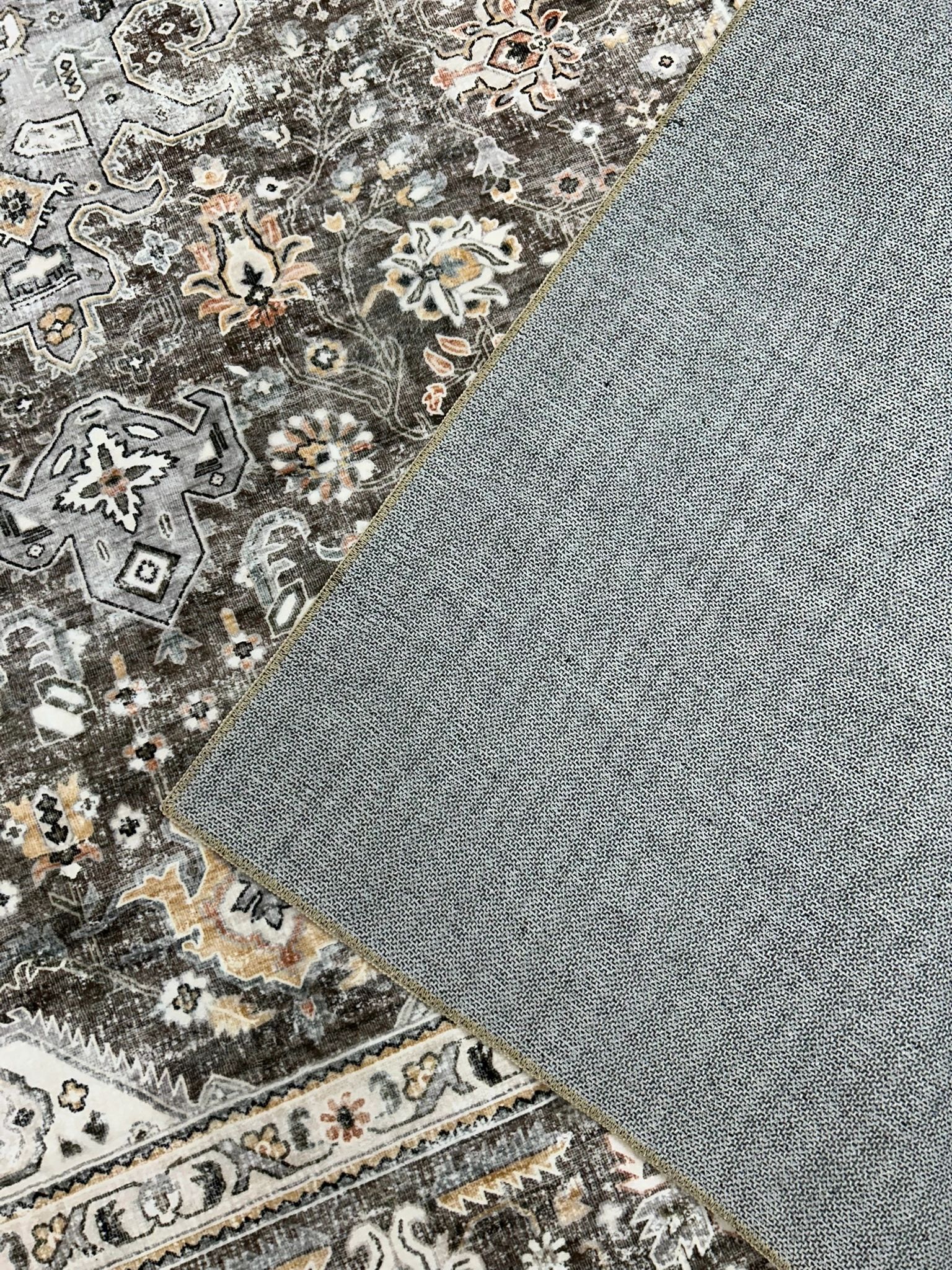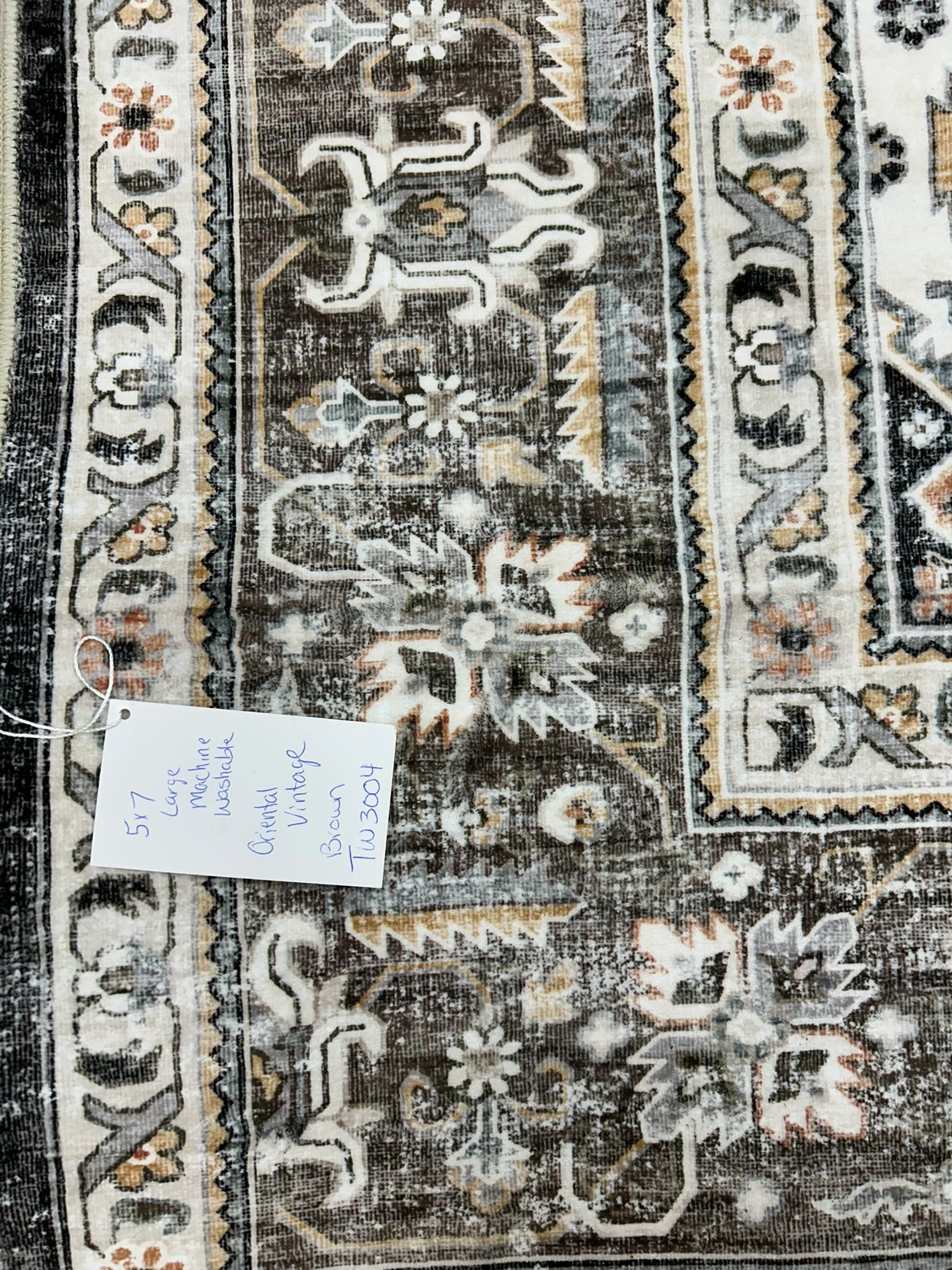 HILORUUG Washable Area Rug – 5×7 Bedroom Living Room Large Indoor Rugs Soft Oriental Vintage Rugs Non-Slip Backing Stain Resistant for Farmhouse Kitchen (5×7 Brown)