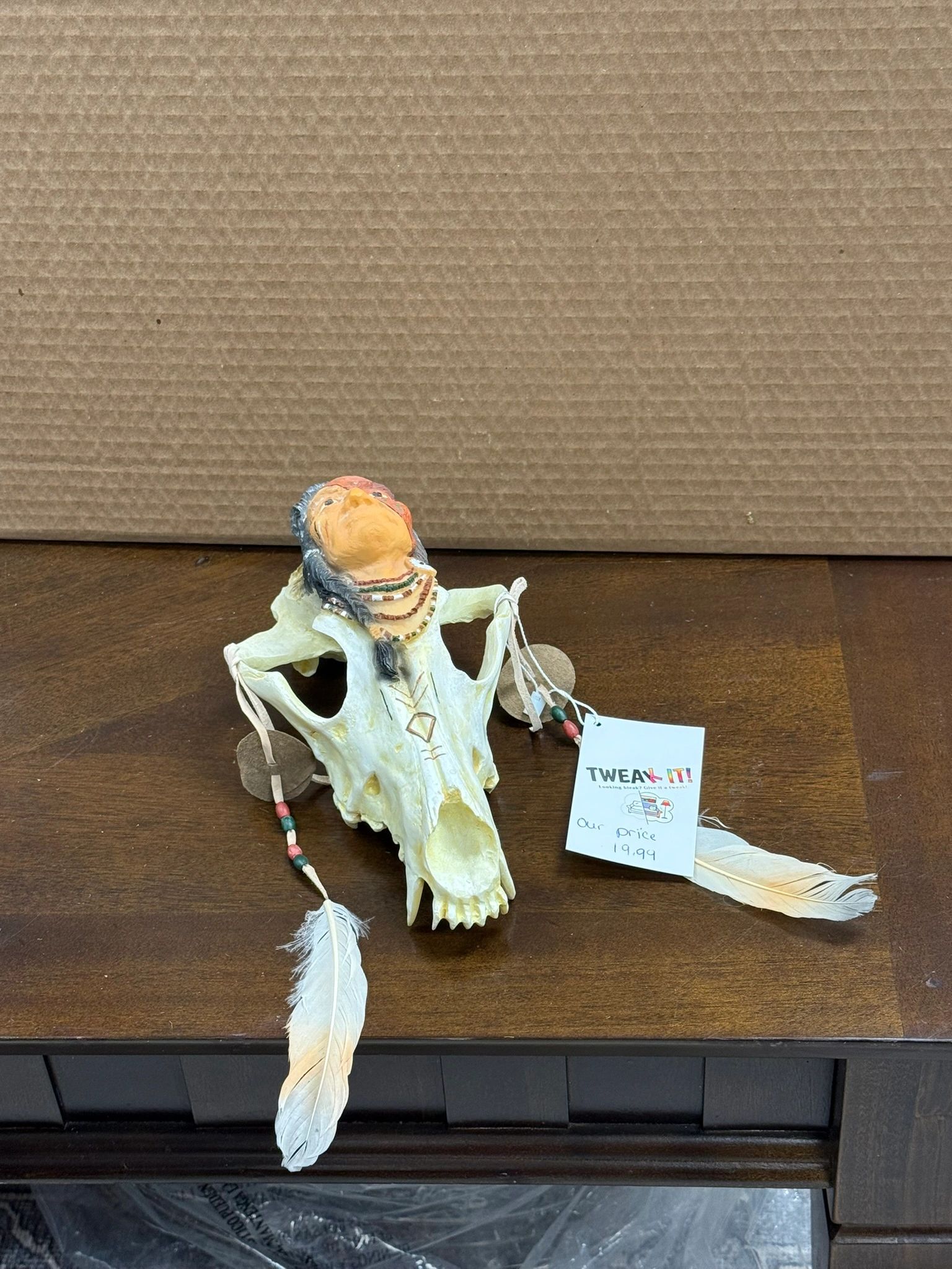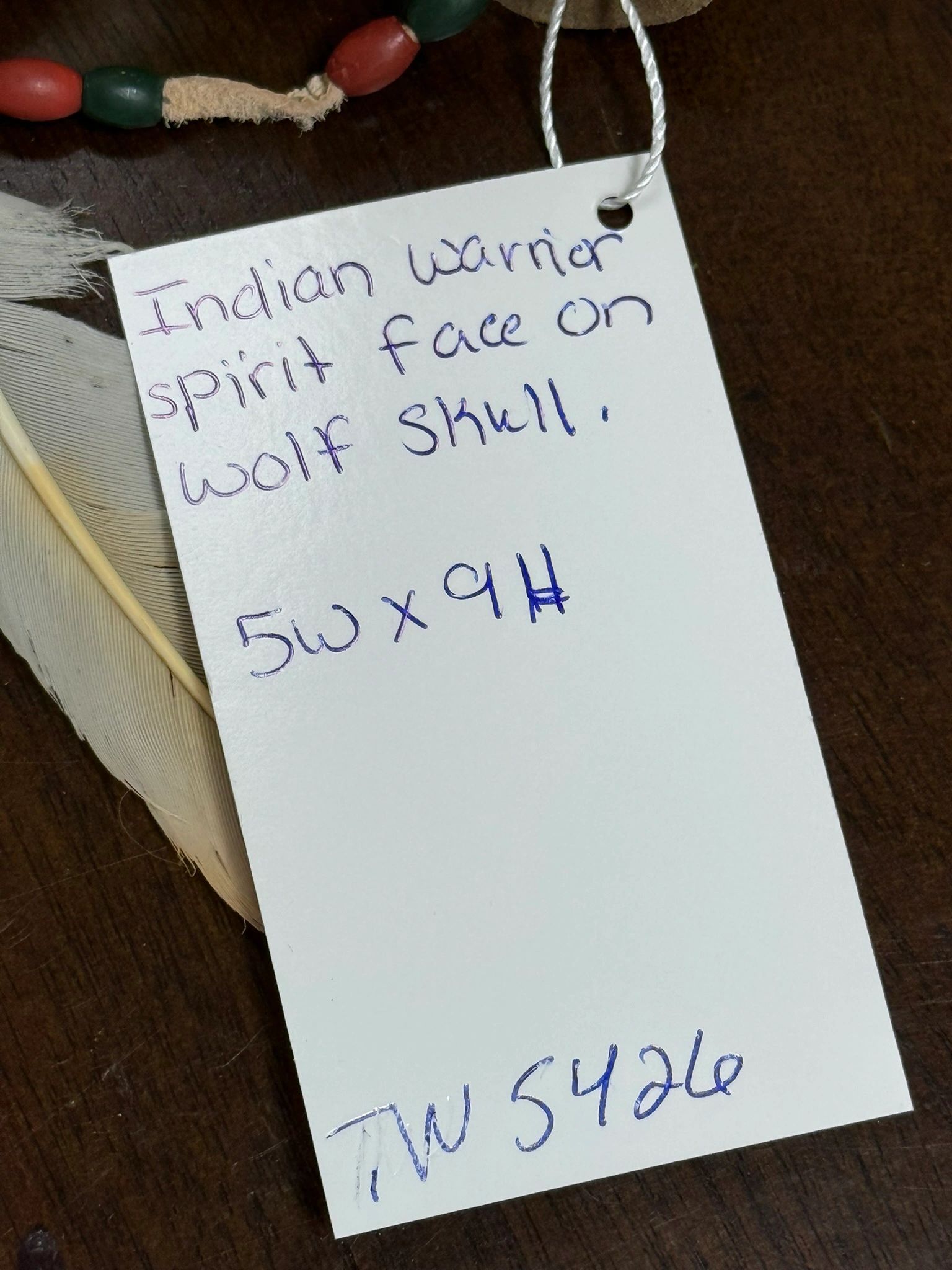INDIAN WARRIOR SPIRIT FACE ON WOLF SKULL 5X9