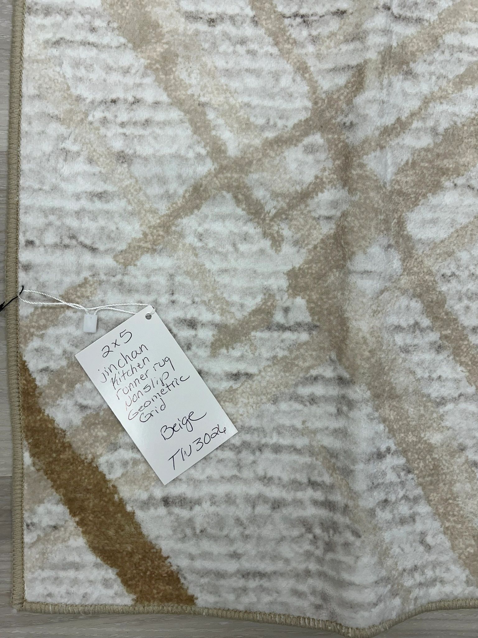 jinchan Kitchen Runner Rug 2×5 Modern Hallway Rug Washable Rug Abstract Runner Non Slip Geometric Grid Accent Rug Beige Lines Soft Thin Rug Carpet Runner for Bedroom Bathroom Laundry Room Living Room