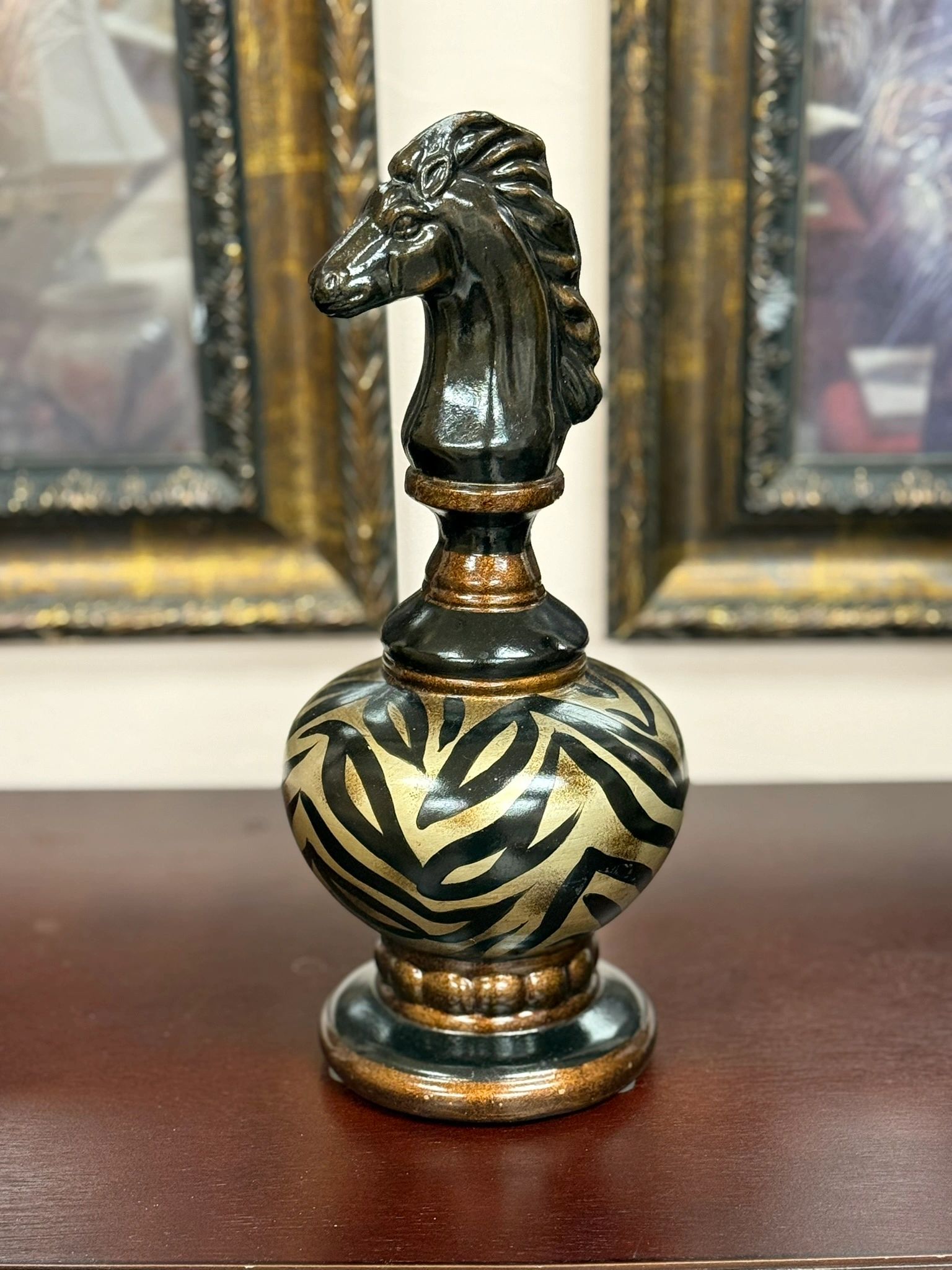 LARGE 12.5″ DECORATIVE CHESS KNIGHT PIECE – ZEBRA PATTERN