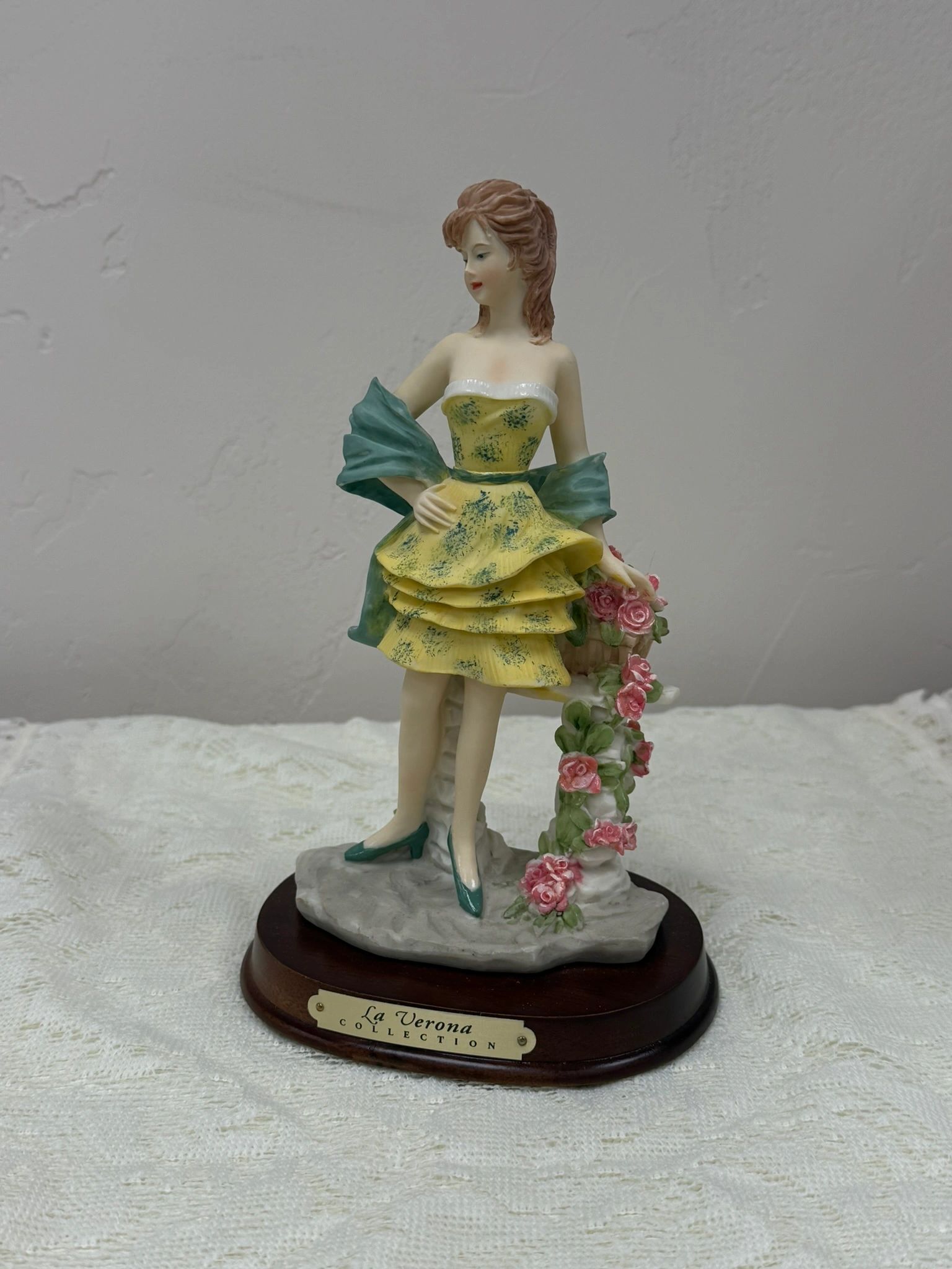 Elevate your home decor with the exquisite La Verona Collection – Woman Yellow/Green Dress figurine. This elegant porcelain piece adds a touch of sophistication to any space.