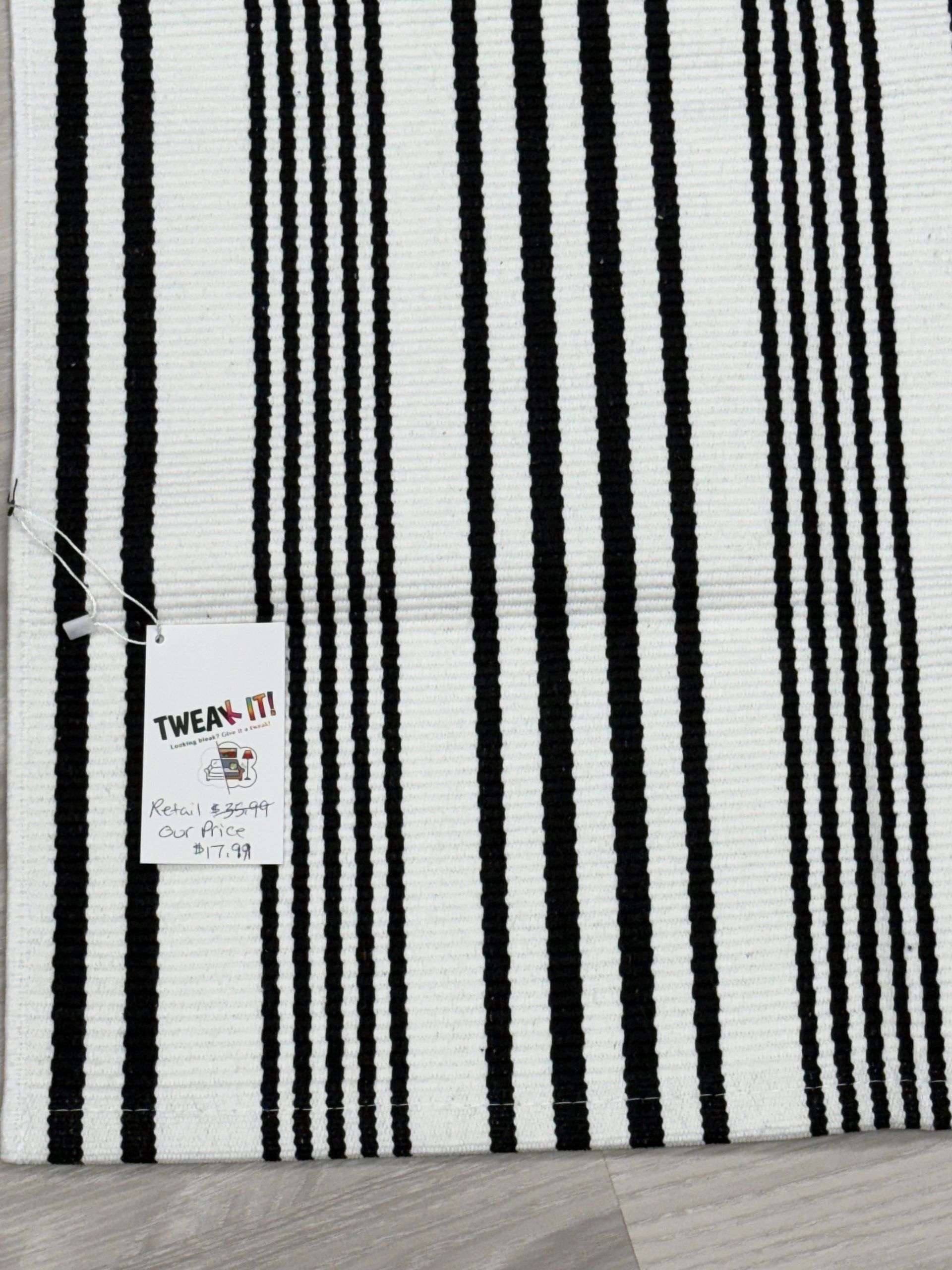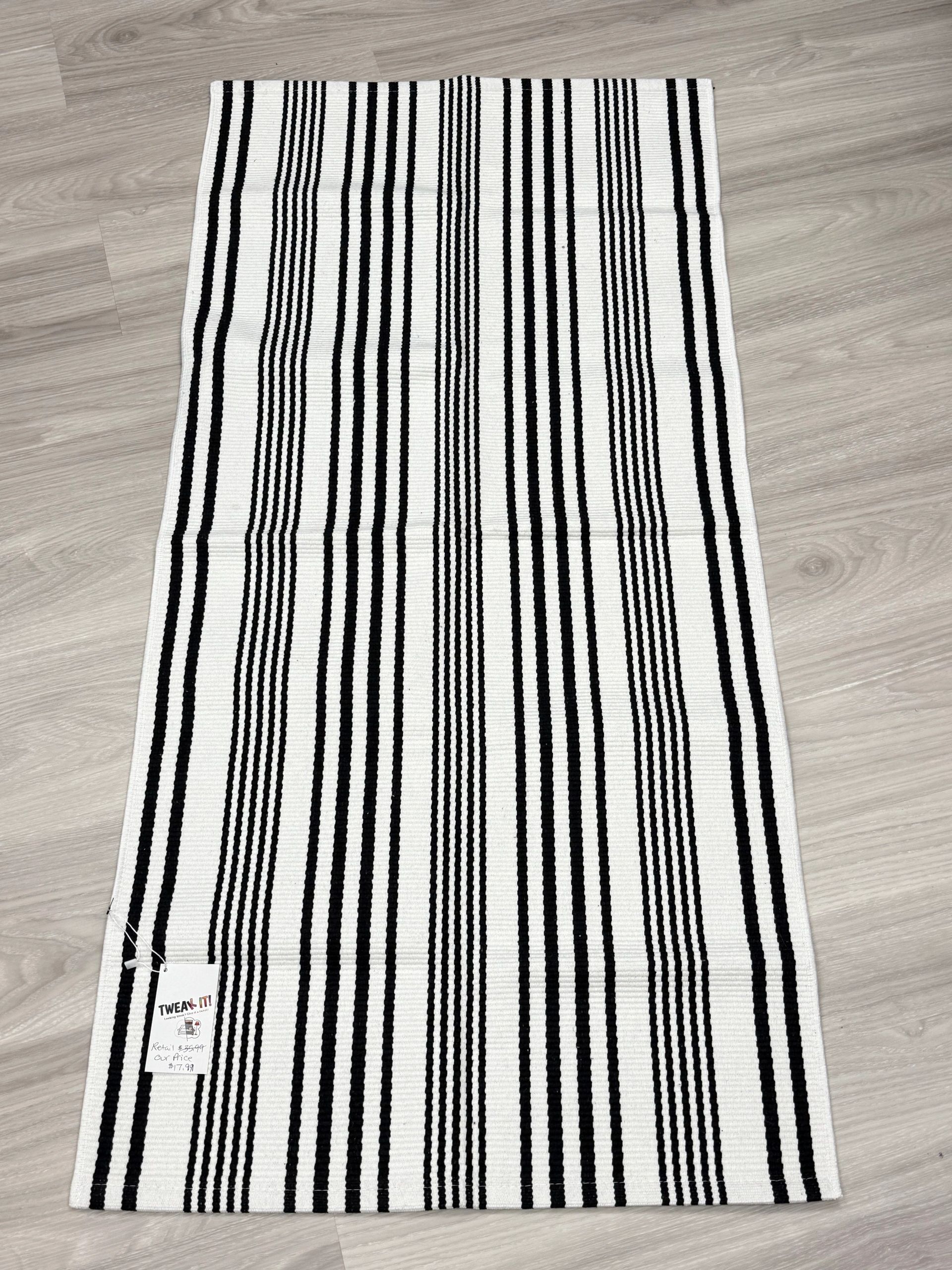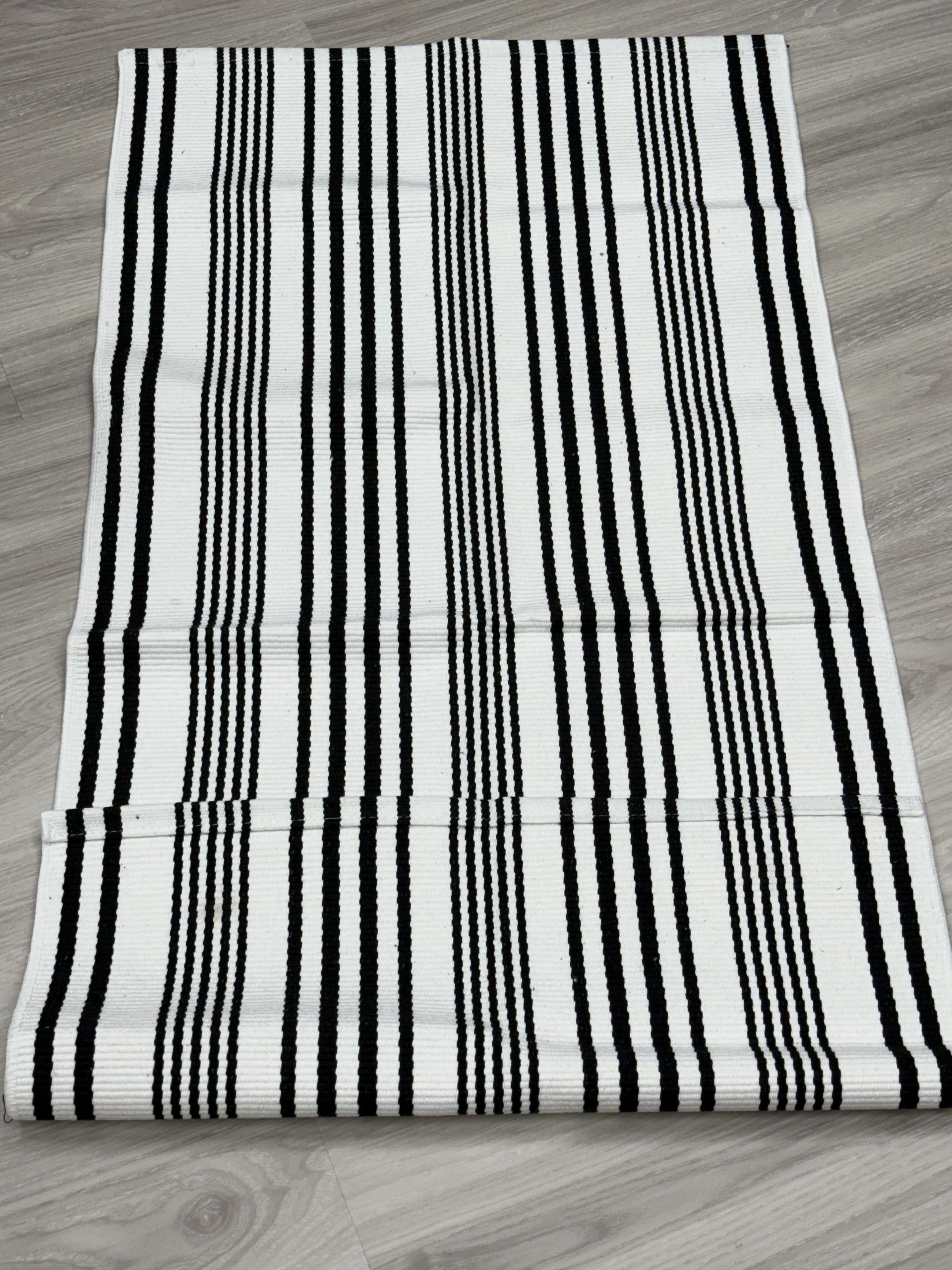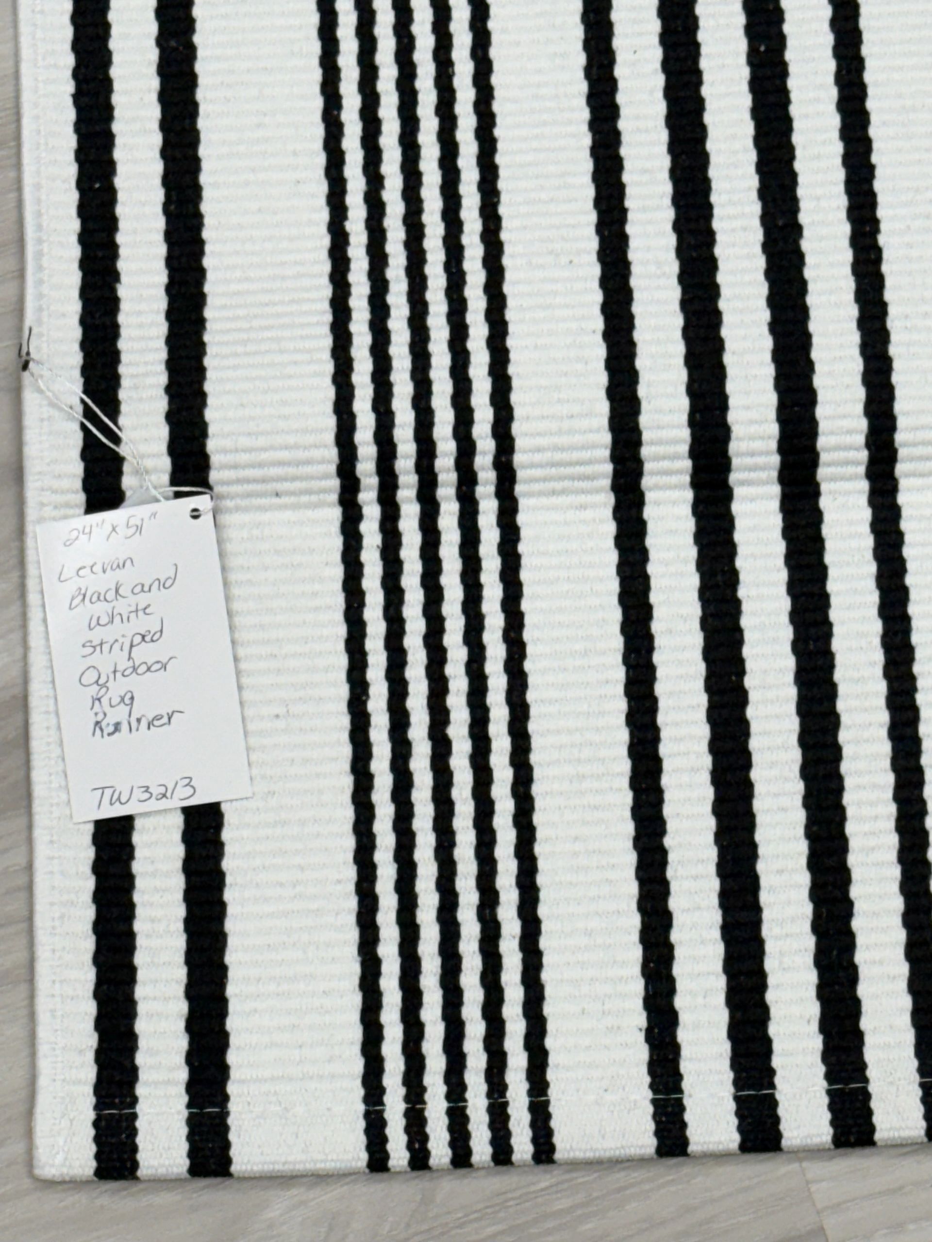 LEEVAN Black and White Striped Outdoor Rug Runner