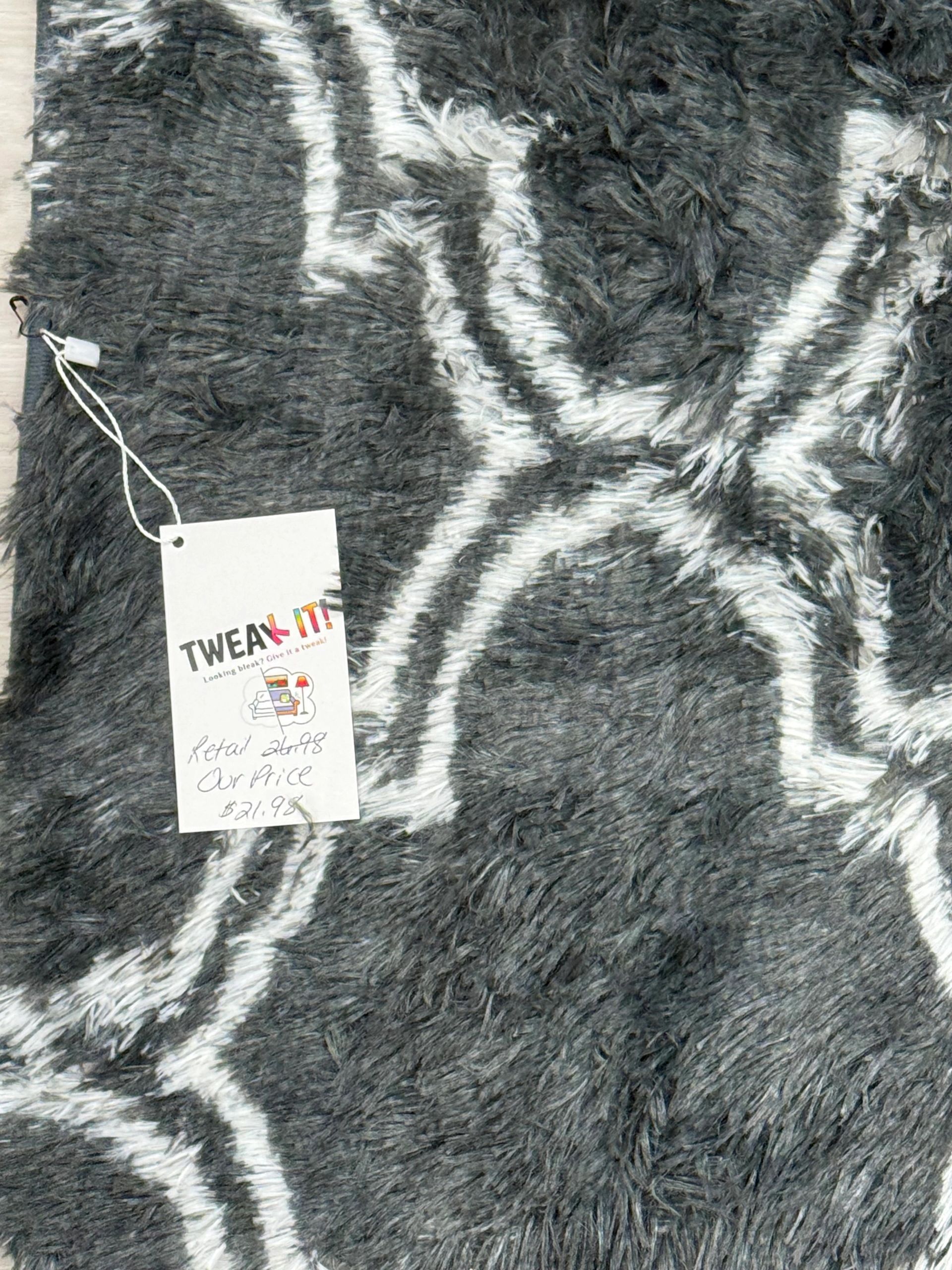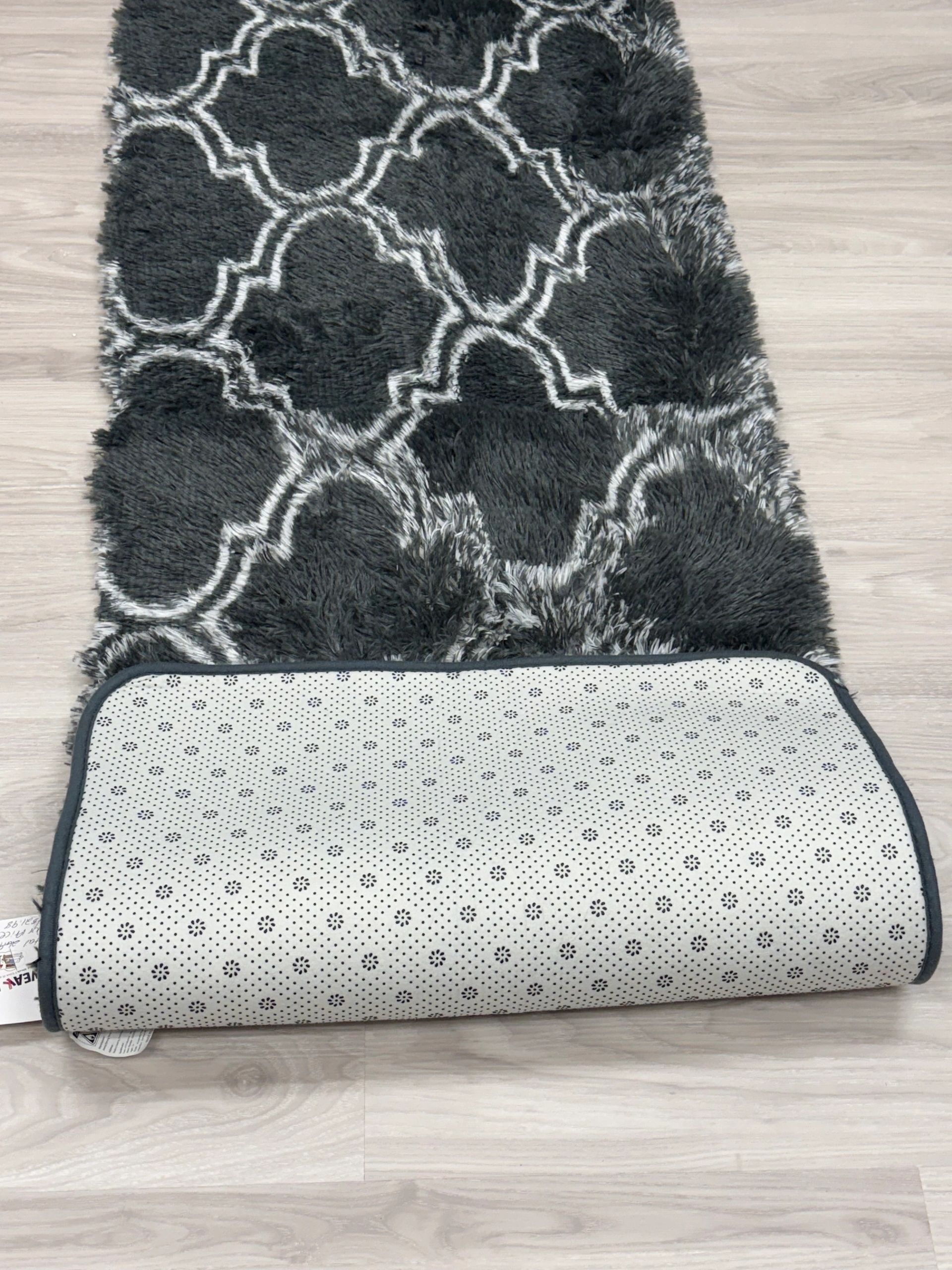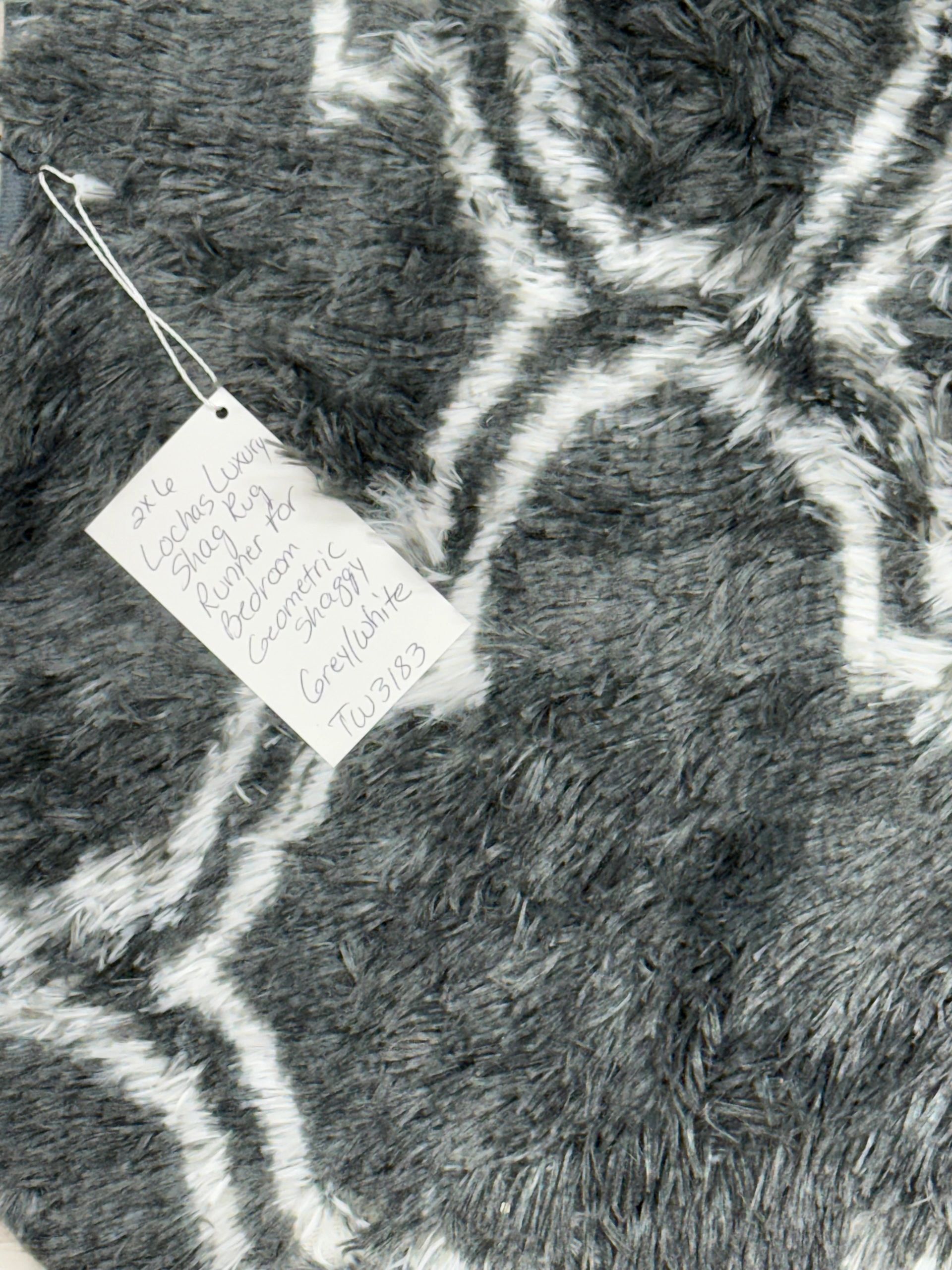 LOCHAS Luxury Shag Area Rug Runner for Bedroom 2×6 Feet Geometric Plush Fluffy Rugs, Extra Soft Moroccan Rugs for Living Room Dorm Kids, High Pile Shaggy Floor Rug Decor, Dark Grey/White
