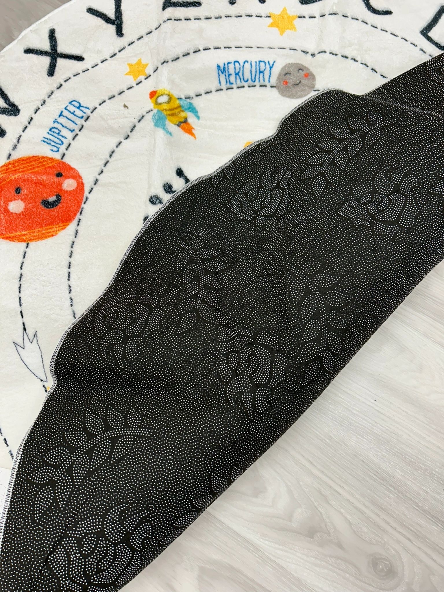 LTKOUGFAM ABC Kids Rug,4 ft Washable Nursery Rug,Soft Plush Educational Circle Rug,Non-Slip Solar System Alphabet Rug for Classroom playroom Bedroom Kids Room Decor
