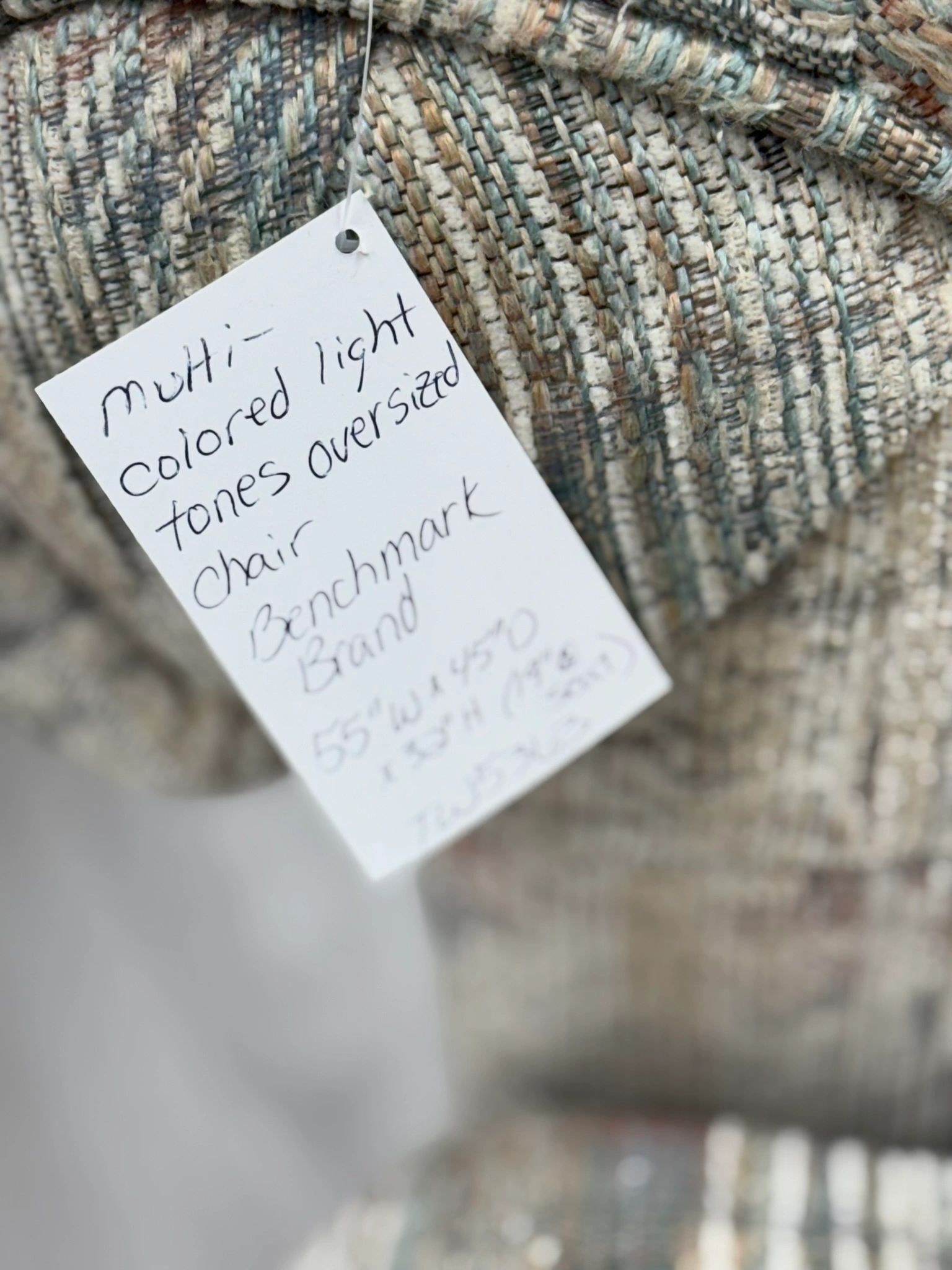 The used Multi-Color Light Tones Benchcraft Oversized Chair is a luxurious addition to any home. With a plush design and beautiful muted pattern, it’s perfect for creating a cozy atmosphere. MULTI-COLOR LIGHT TONES BENCHCRAFT OVERSIZED CHAIR – 44″D X 55’W X 32″H (19″H AT SEAT)