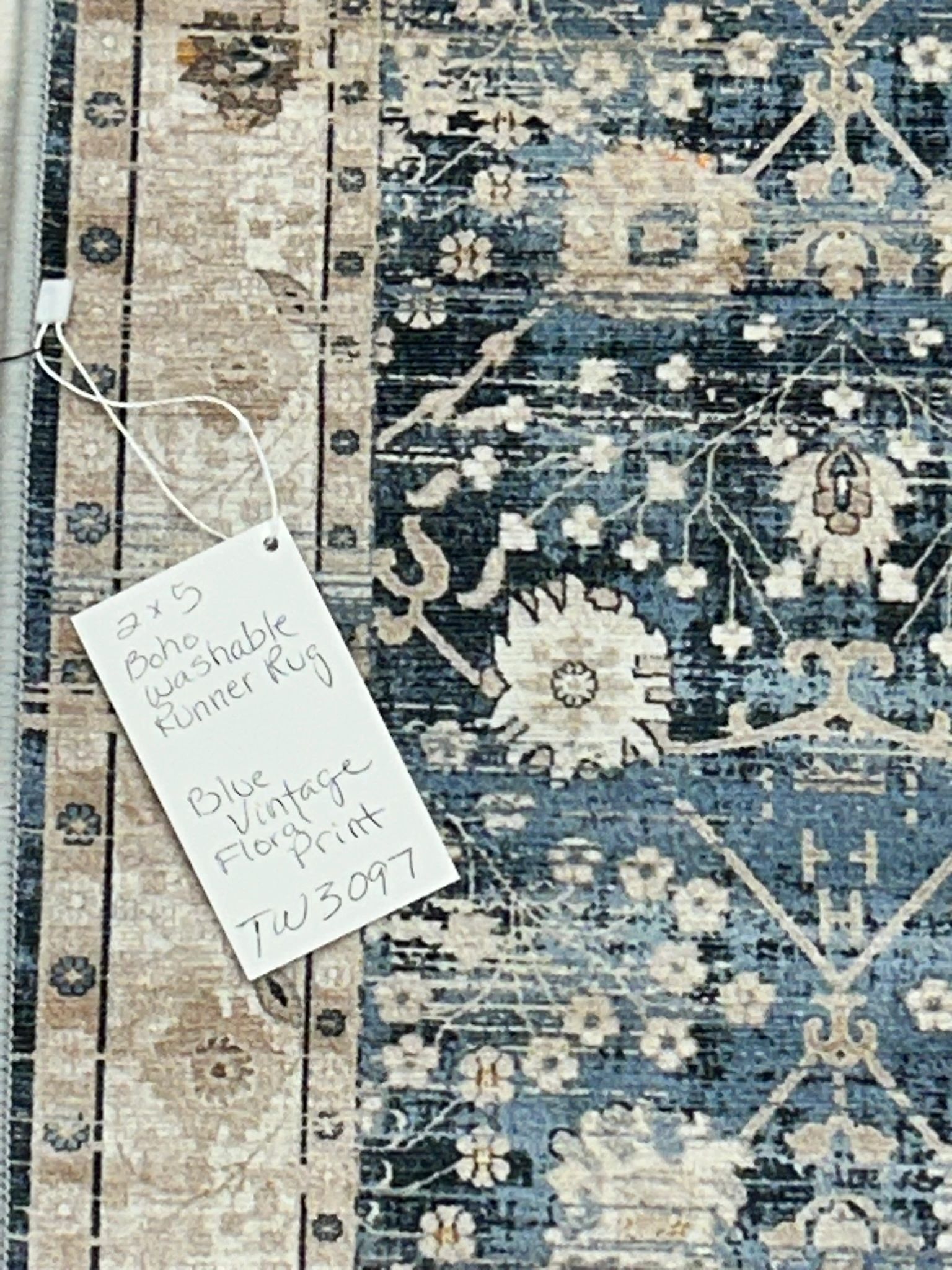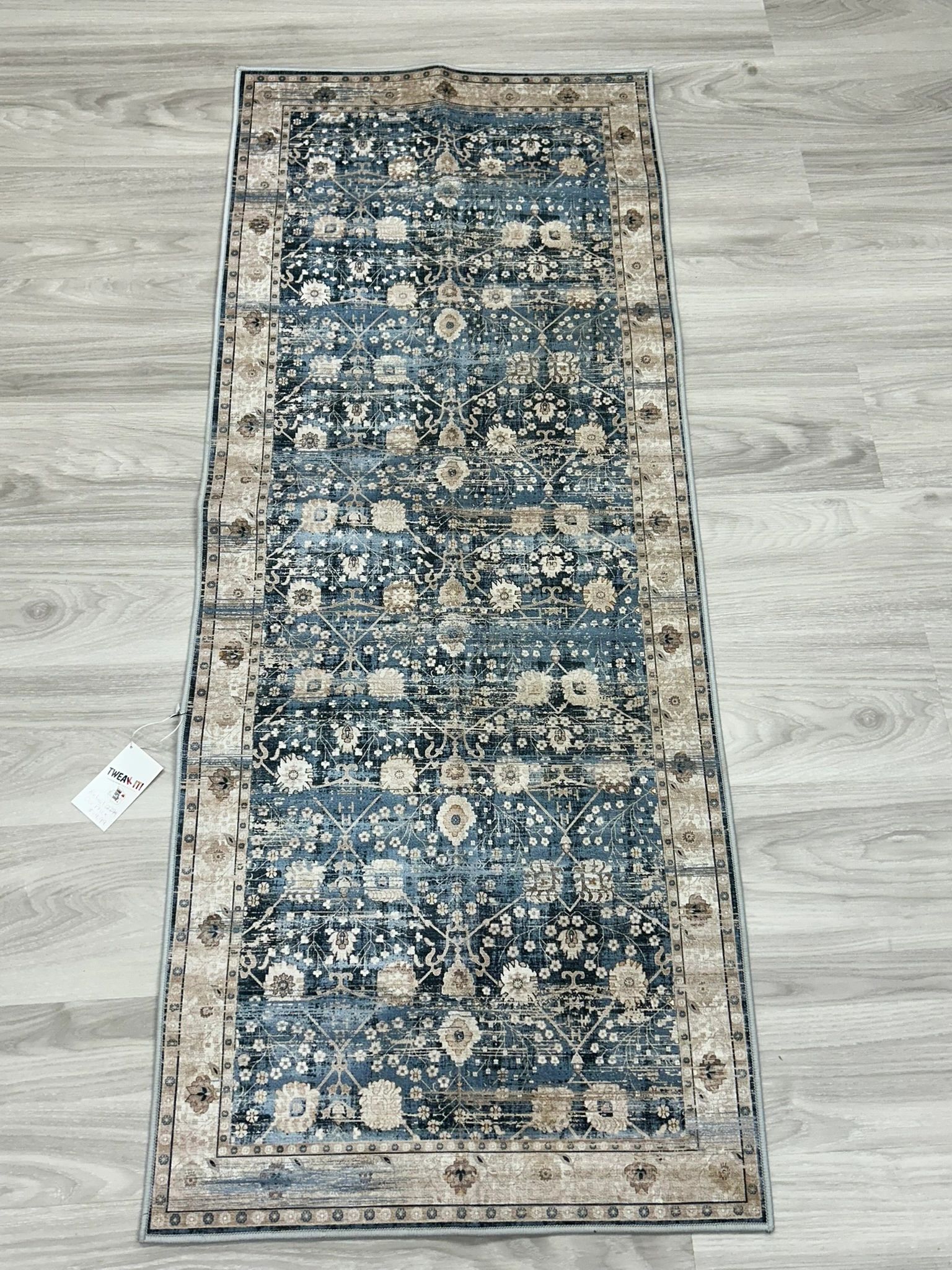 Nailttos Boho Washable Runner Rug,2×5 Non-Slip Blue Vintage Floral Print Hallway Runner Rug, Low-Pile Kitchen Runner Rug Washable Thin Throw Rugs for Bedroom Bathroom Laundry Room