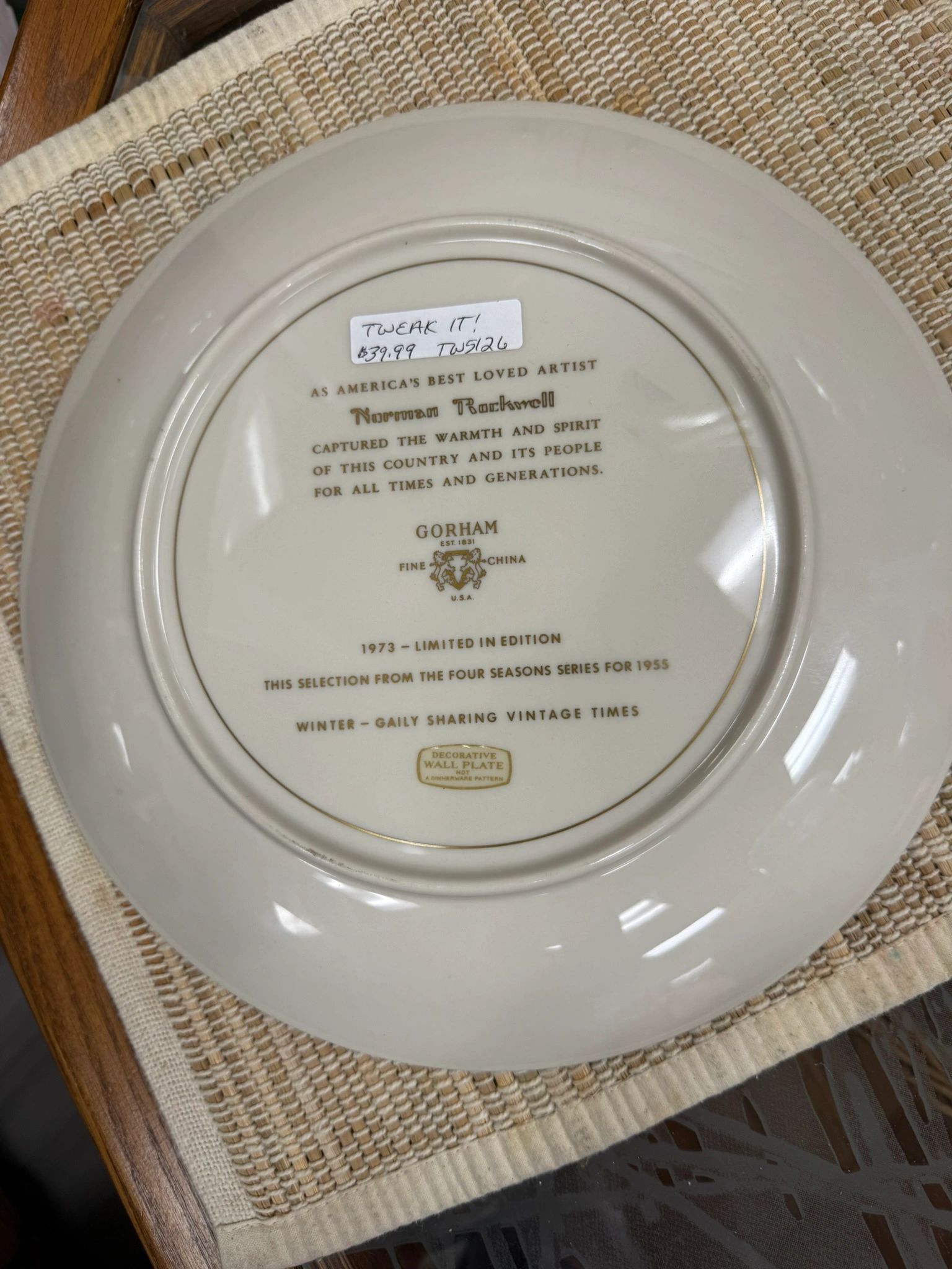 Celebrate the timeless art of Norman Rockwell with this limited edition 1973 Four Seasons Series Winter plate, depicting a cozy scene of vintage charm. Perfect for any home decor.