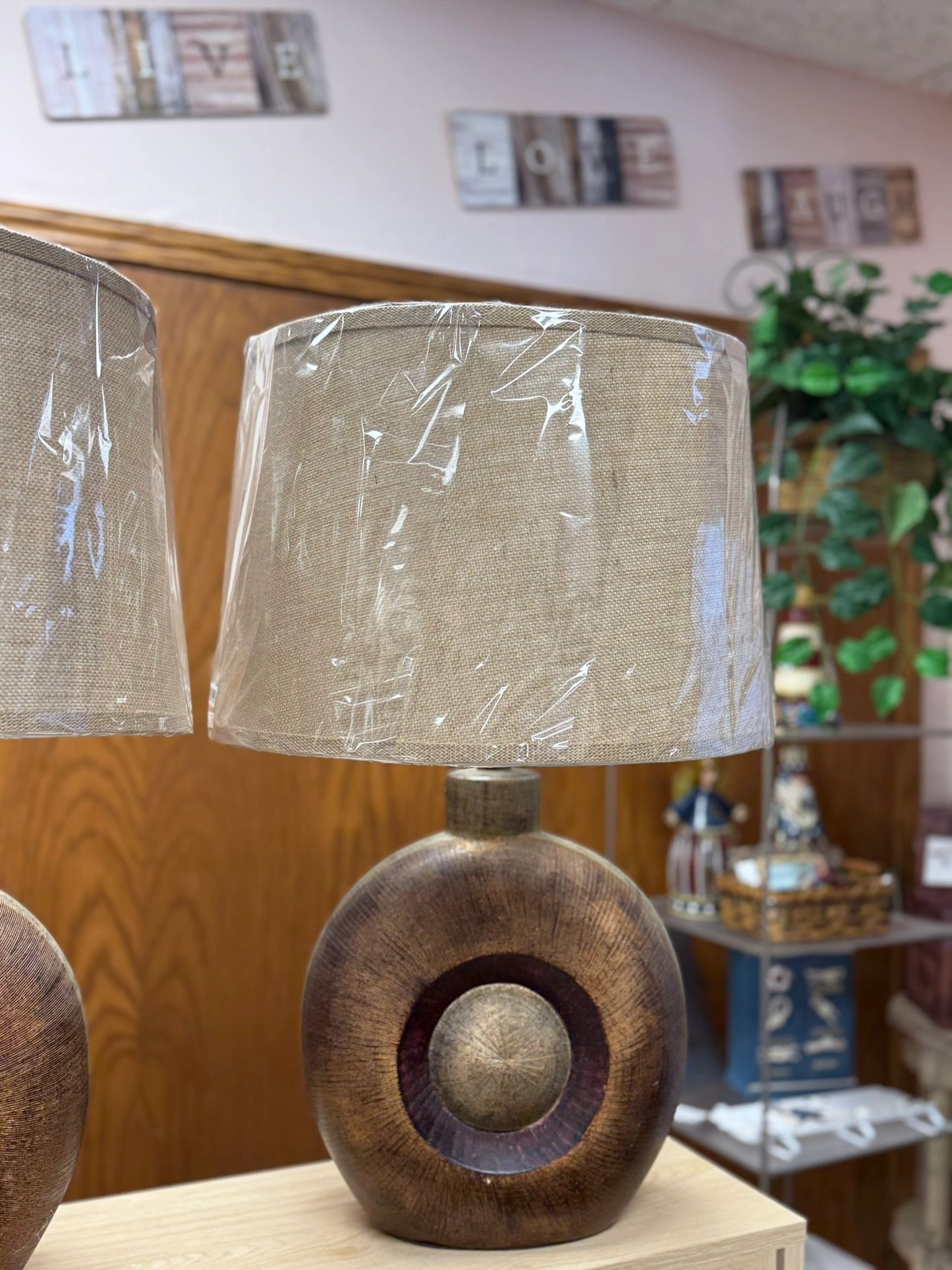 Illuminate your space with the elegant Pair of Ashley Jayliah Snail Shaped Table Lamps. Featuring a unique snail-shaped design, these lamps add a touch of sophistication to any room. The lampshades are new, but the base lamps were used, and picture shows that 1 lamp was repaired (barely noticeable and on the backside).