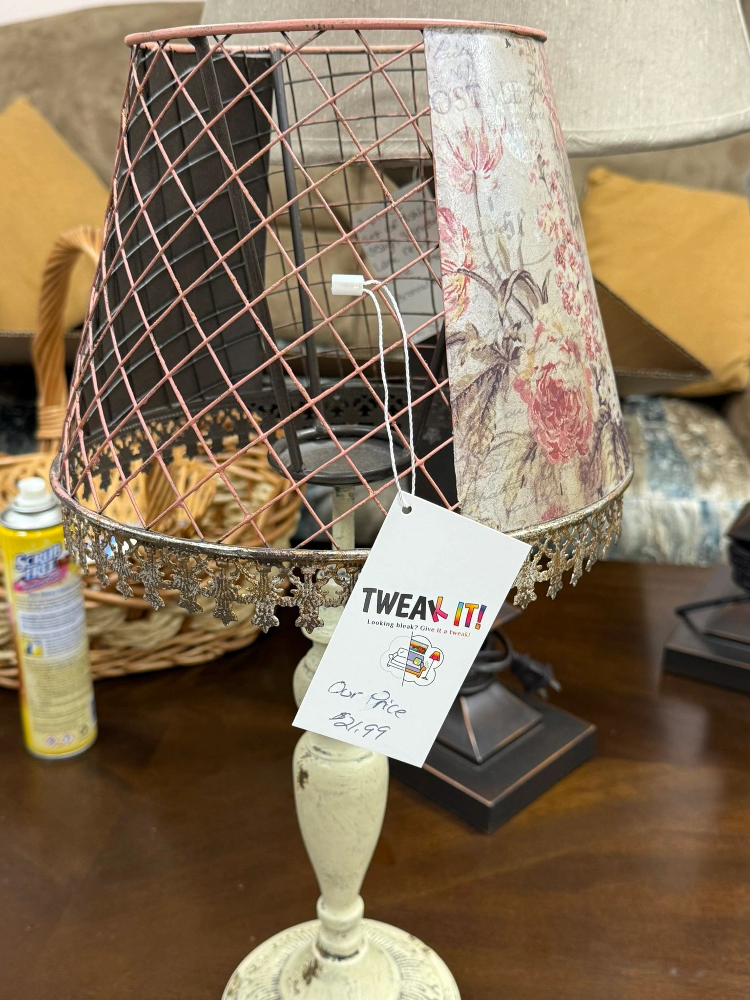 PATCHWORK TEA LIGHT LAMP – PINK/TAN