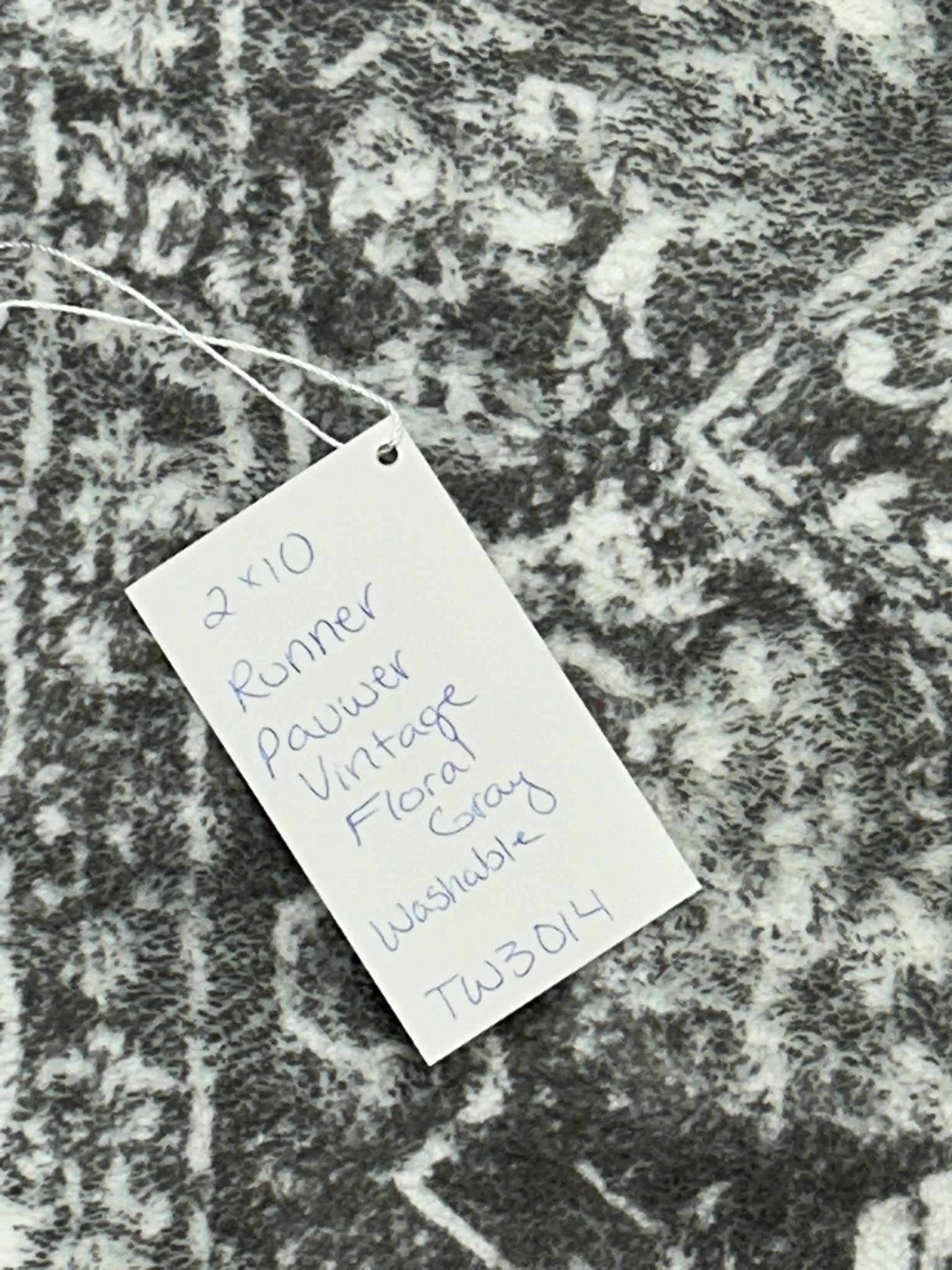 Pauwer Vintage Floral Runner Rug, Non-Slip Non-Shedding Hallway Rug Runner, 2×10 Soft Machine Washable Carpet Runner Low-Pile Floor Carpet for Entryway Laundry Room Bedroom Kitchen(Grey,2x10Ft)