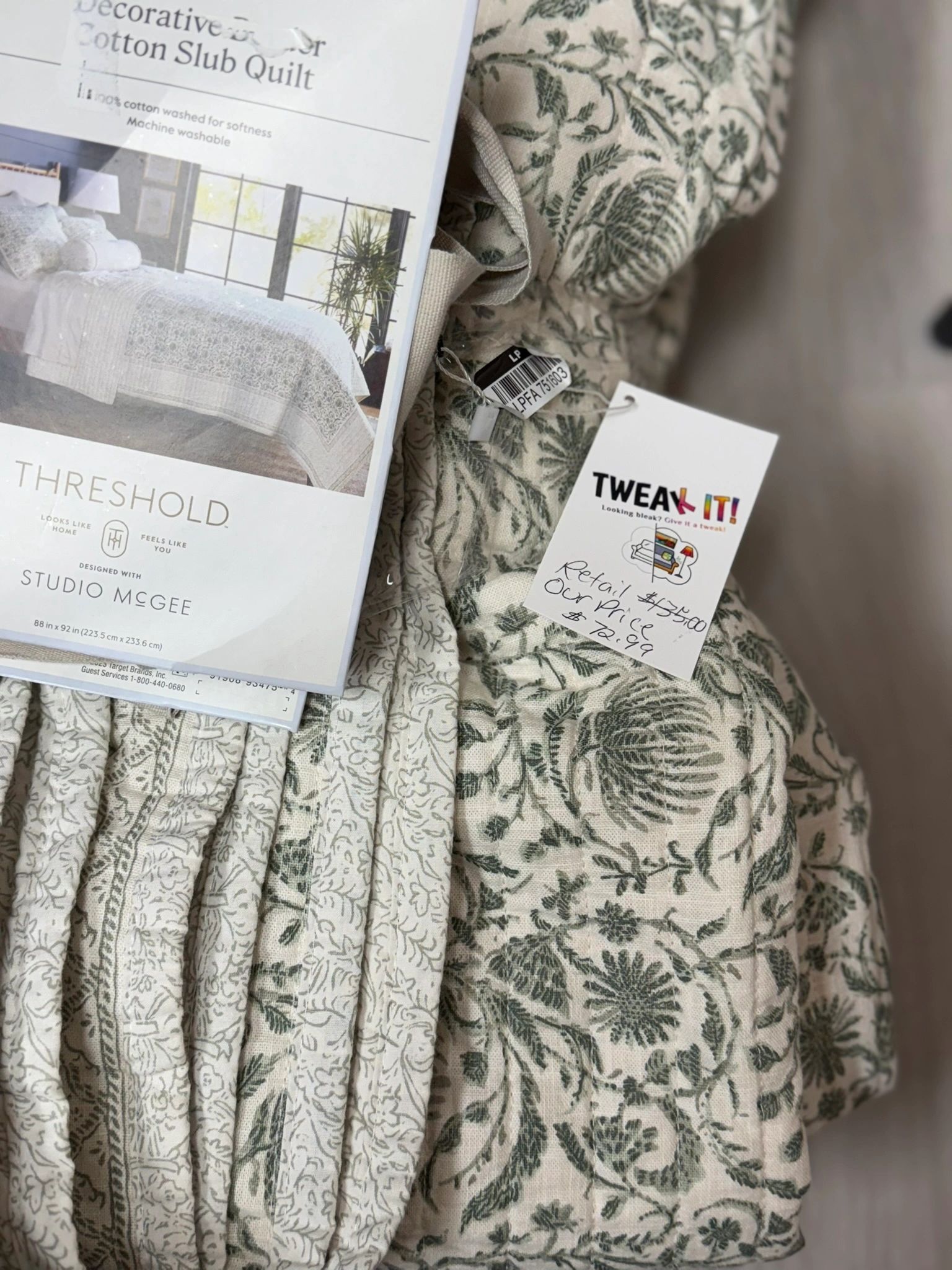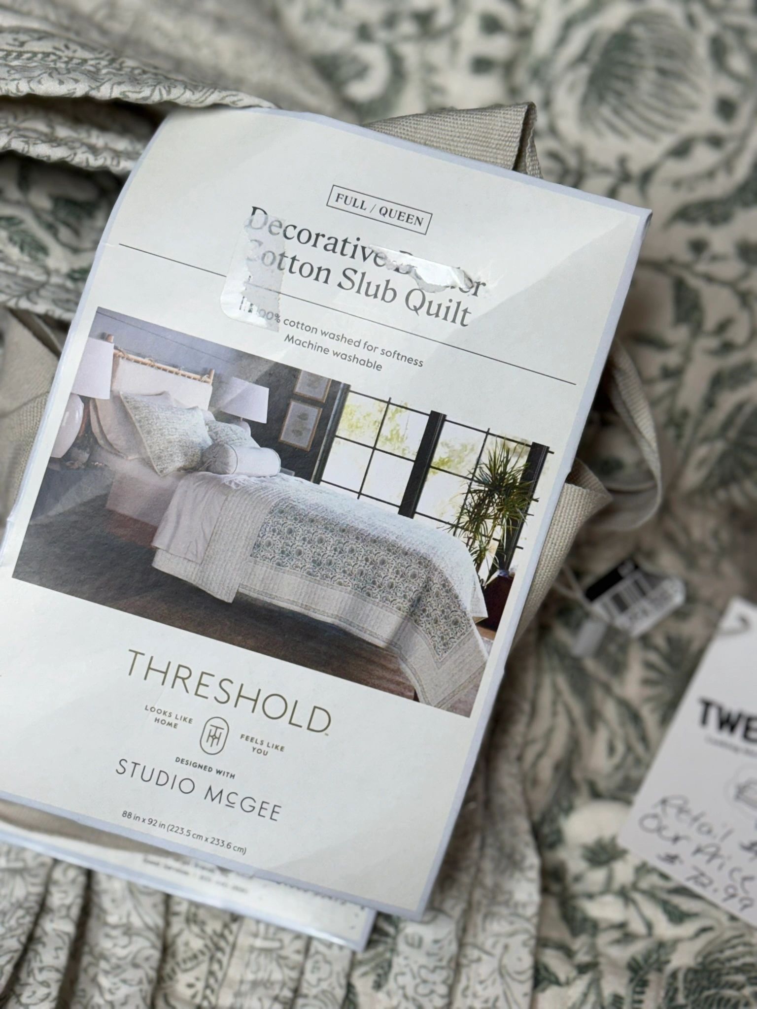 Queen/Full Decorative Border Cotton Slub Print Quilt