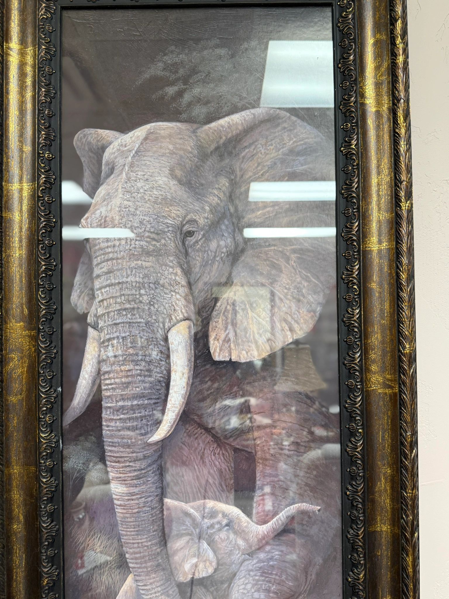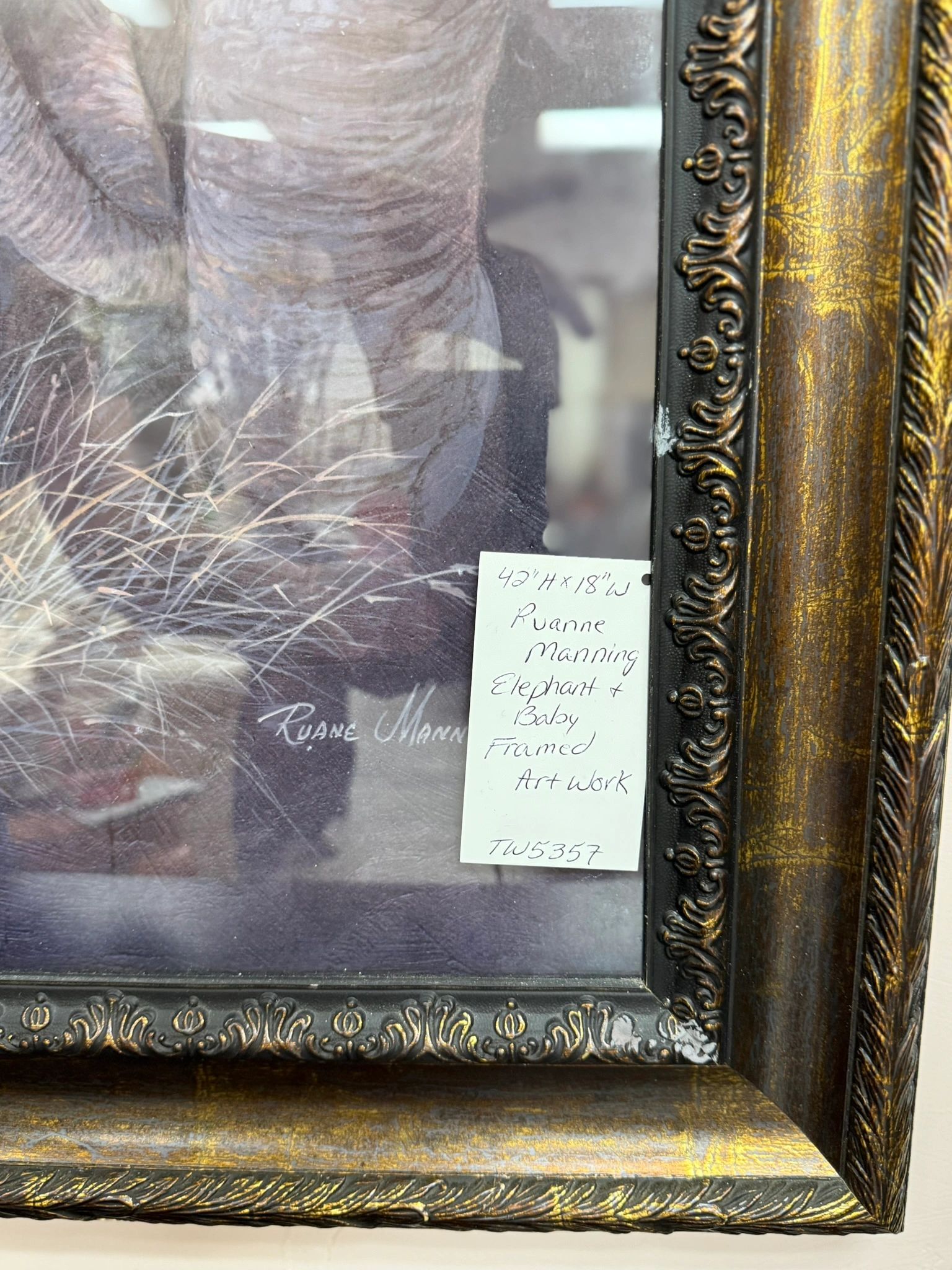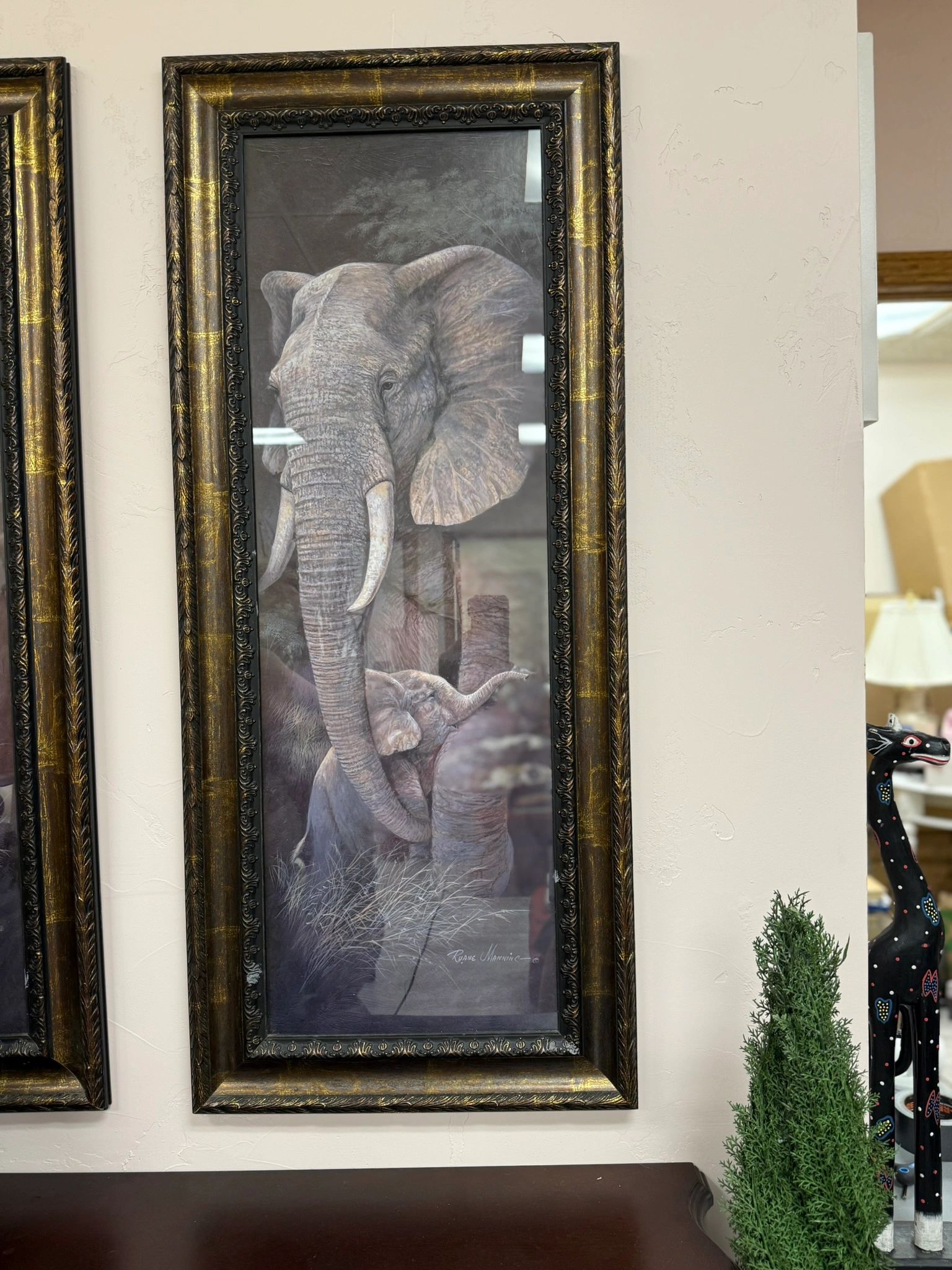RUANNE MANNING ELEPHANT AND BABY FRAMED ART WORK
