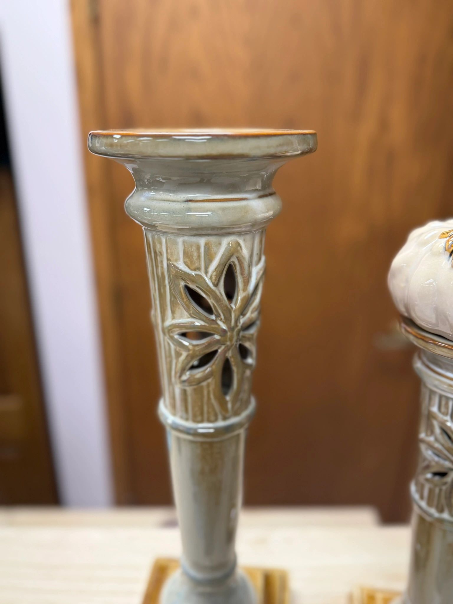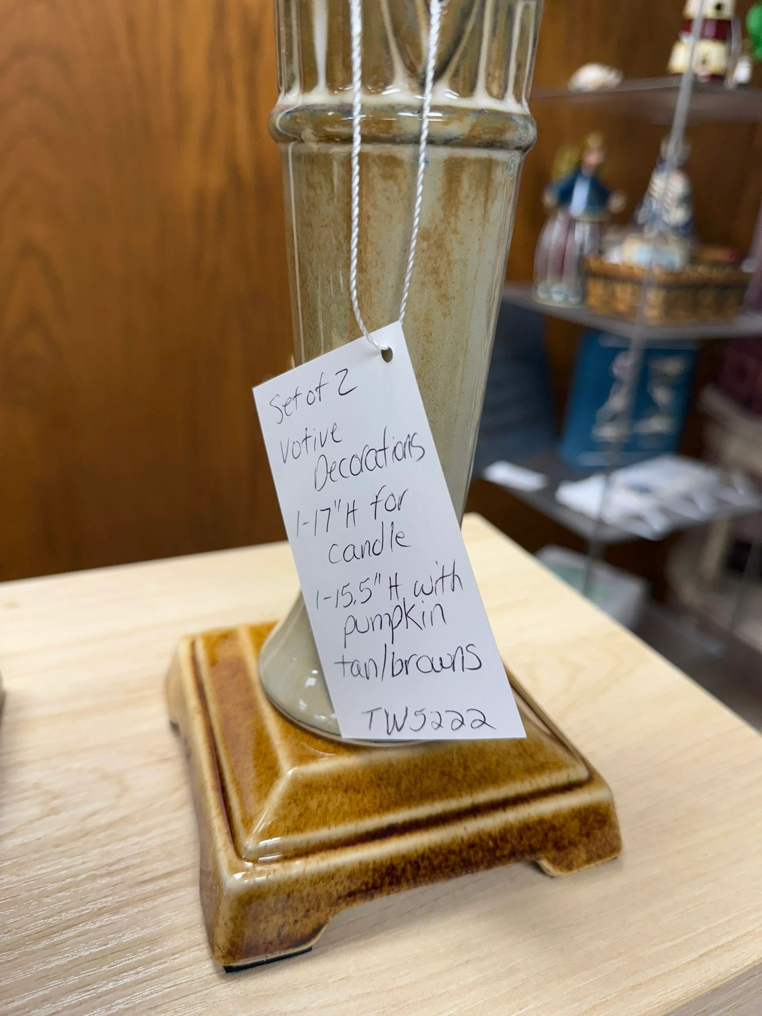 SET OF 2 VOTIVES; ONE FOR CANDLE, ONE WITH PUMPKIN – USED