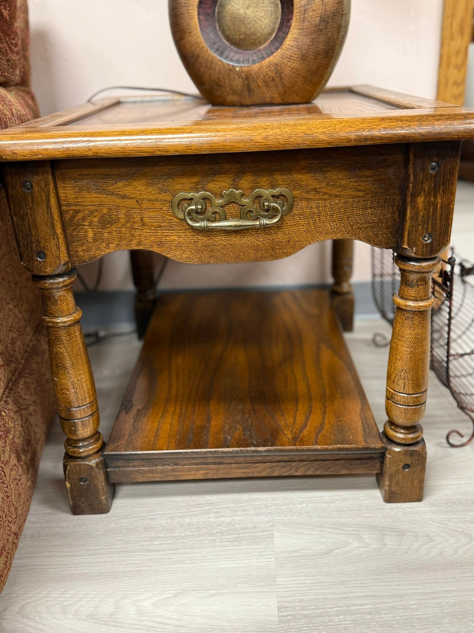 Elevate your living room with our elegant set of solid wood coffee table and 2 end tables in dark wood finish with decorative handles. Shipping not available. 21.5W X 25″LX21″H – END TABLES