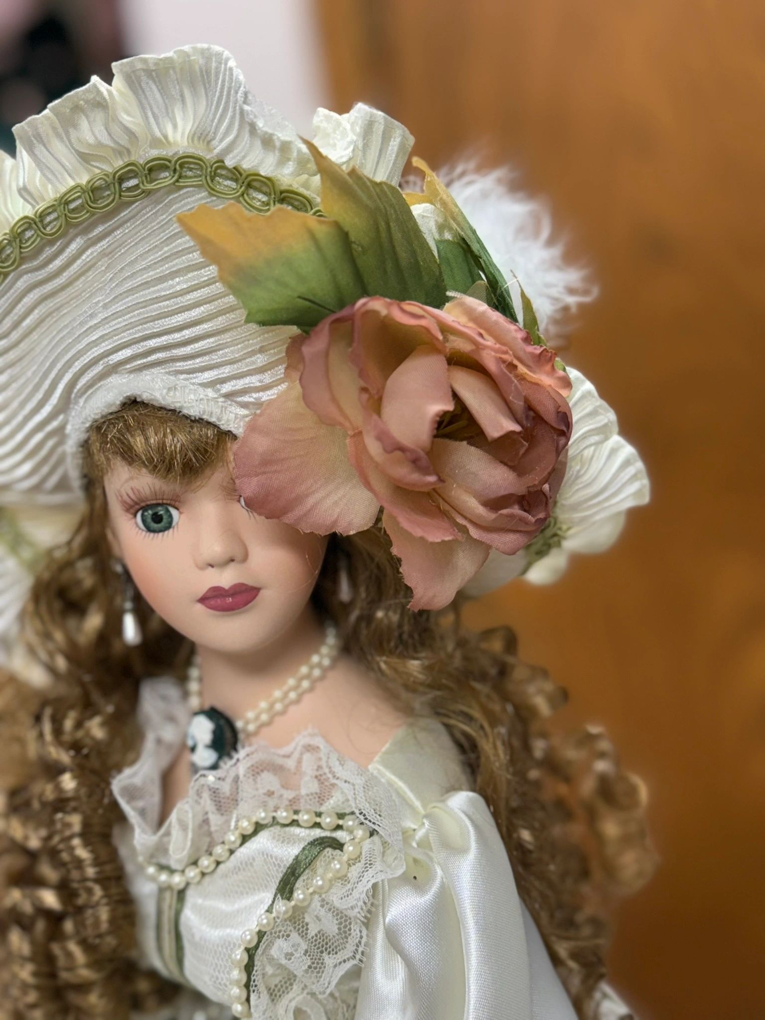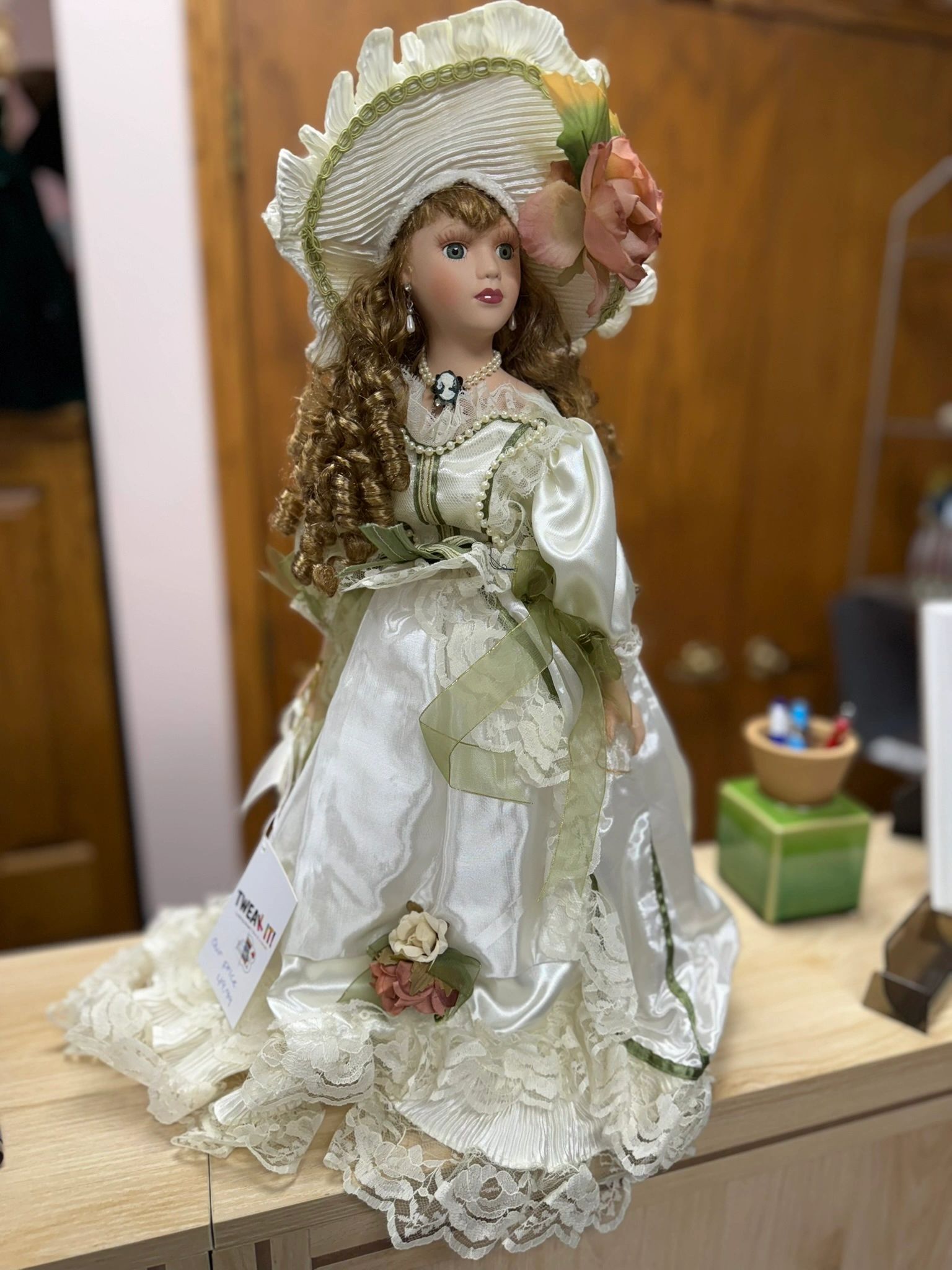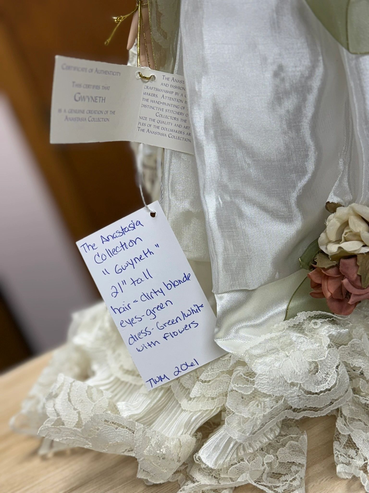 THE ANASTASIA COLLECTION “GWYNETH” 21″ TALL HAIR – BLOND, EYES GREEN – DRESS – GREEN/WHITE WITH FLOWERS