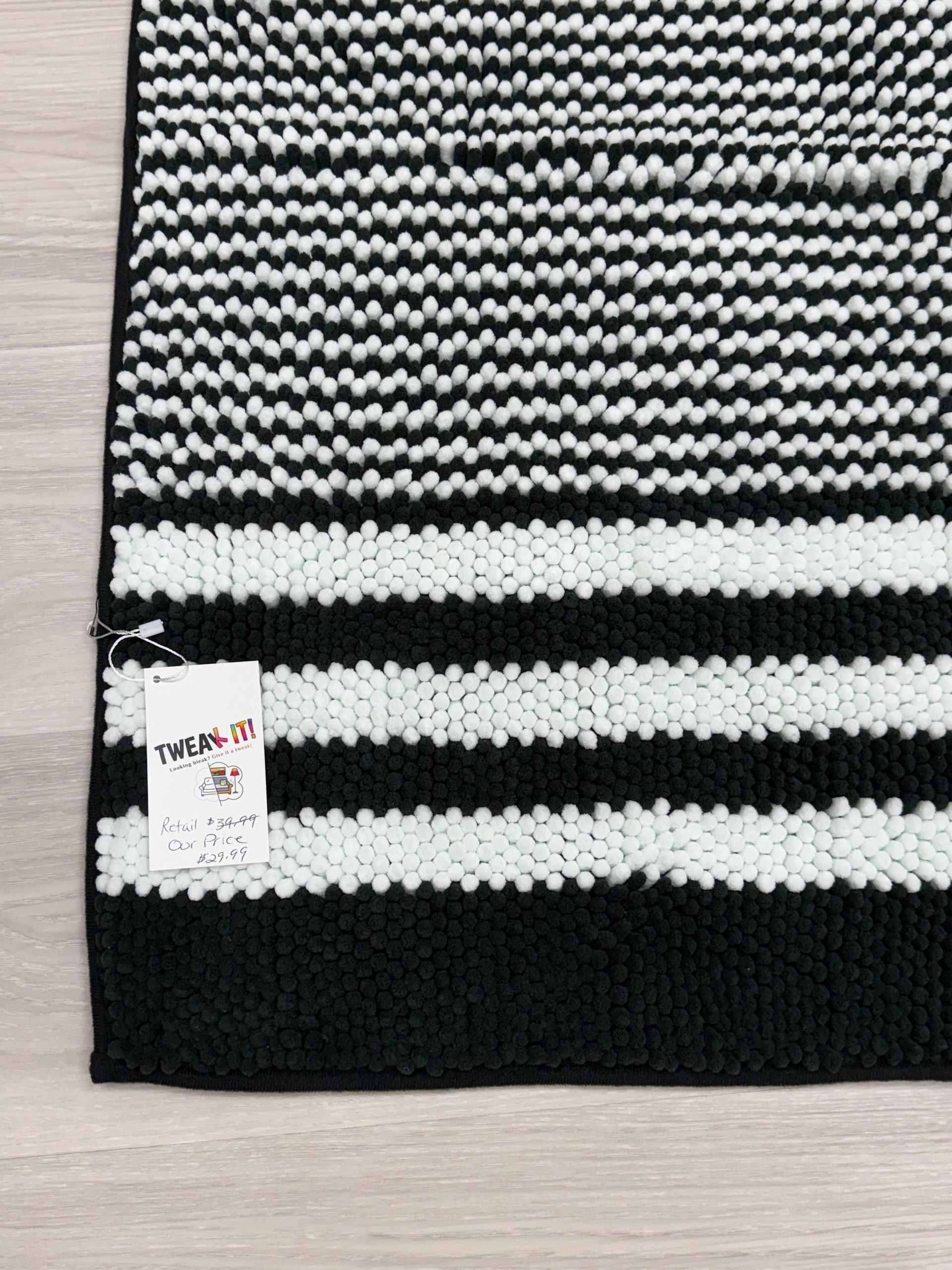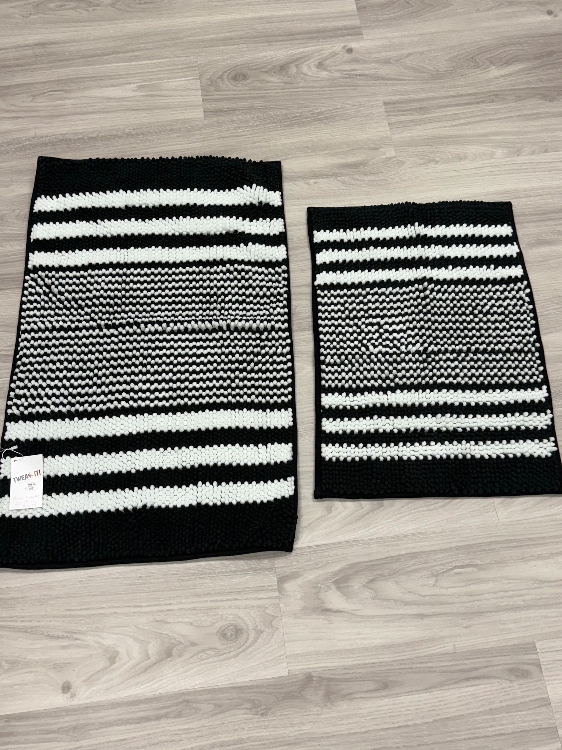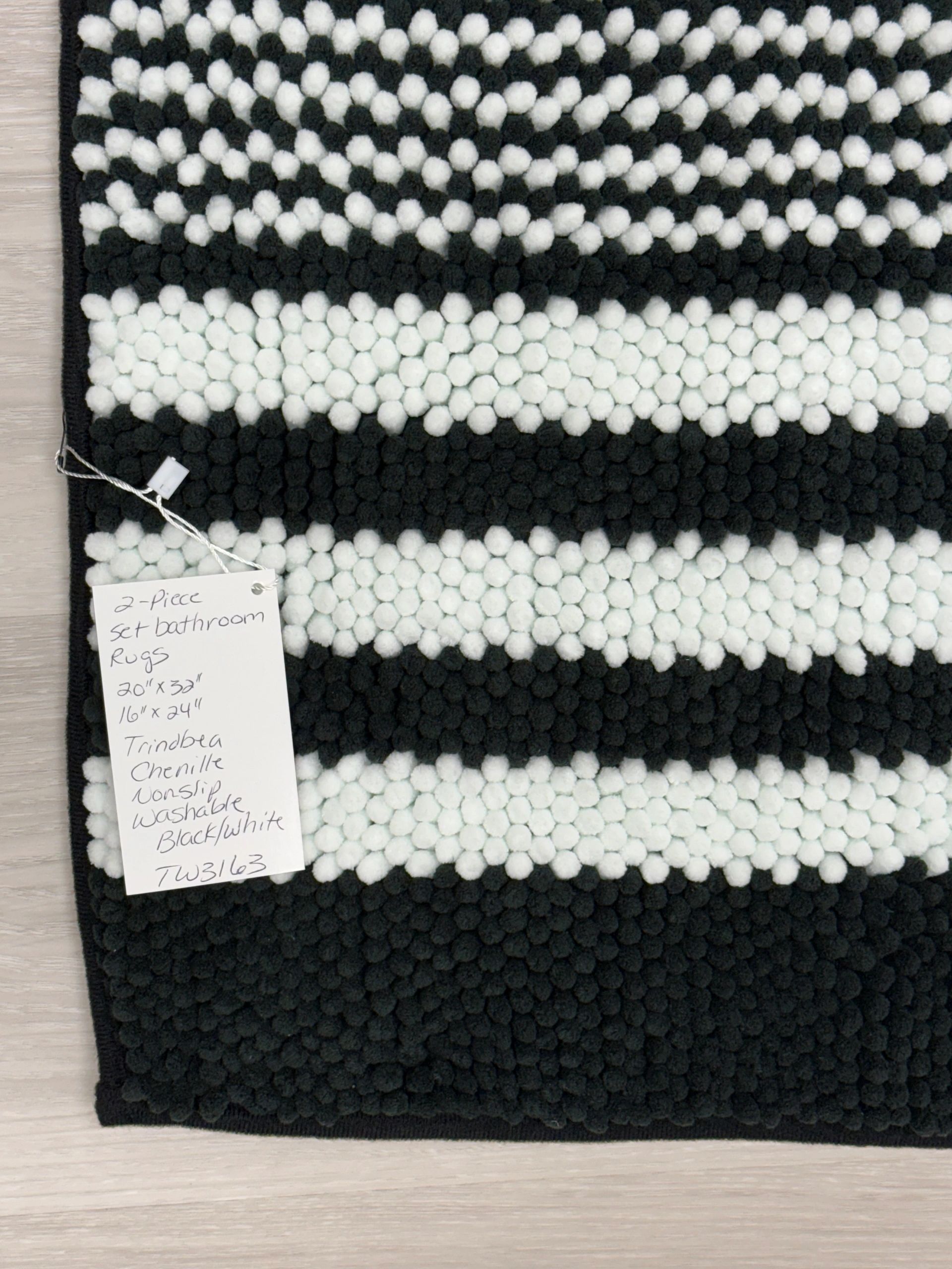 Tindbea Bathroom Rugs Set 2 Piece, Extra Soft and Absorbent Fluffy Striped Chenille Bath Mat Rug Set, Non Slip Bathroom Floor Mat, Machine Washable (20″ x 32″ Plus 16″ x 24″, Black)