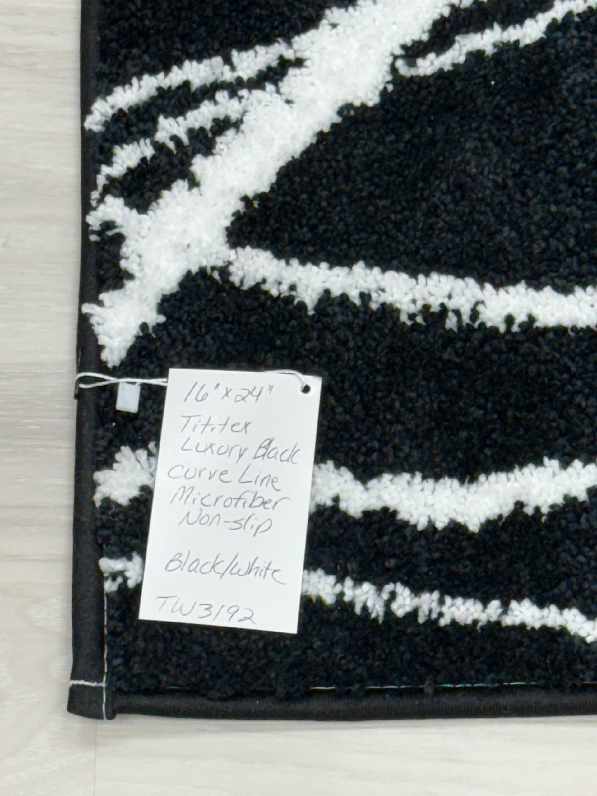 Tititex Luxury Black Curve Line Bathroom Rug, 16×24 inch Classic Extra Soft and Absorbent Microfiber Bath Rugs, Non-Slip Plush Shaggy Bath Carpet, Bath Mats for Bathroom Floor, Tub and Shower